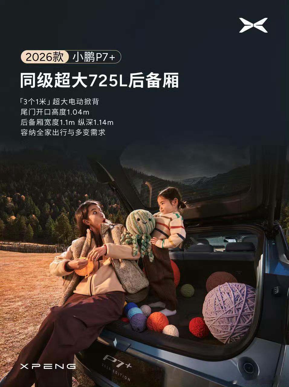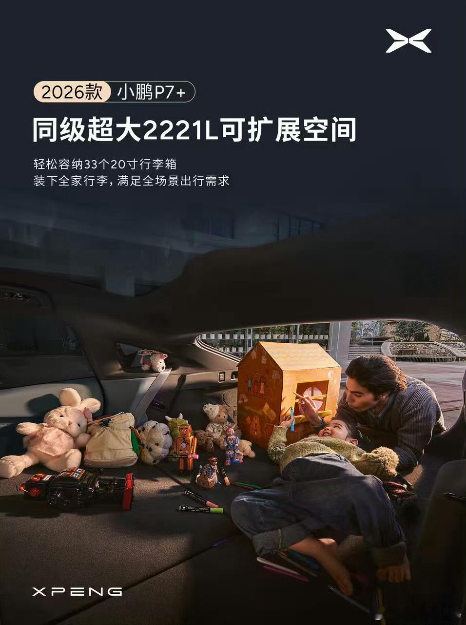 新款小鹏P7+过两天就要上了空间是这回的宣传重点,超5米车长,3米的轴距前后排都能轻松跷二郎腿后备箱也是非常大新款小鹏P7+是空间怪物新款小鹏P7+前后排都能跷二郎腿小鹏P7+