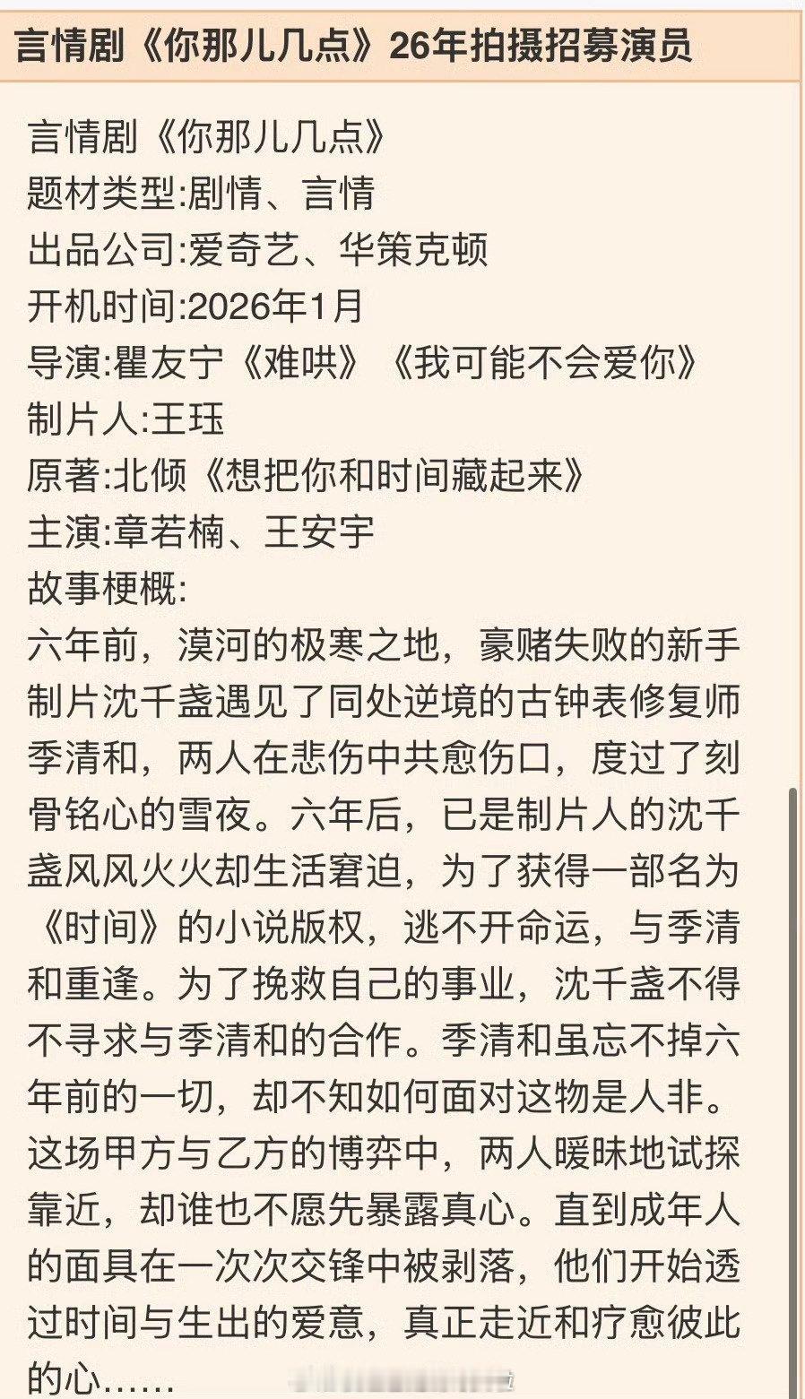 《你那儿几点》临近开机导演从瞿友宁变黄天仁,男女主章若楠王安宇粉丝都在永拒
