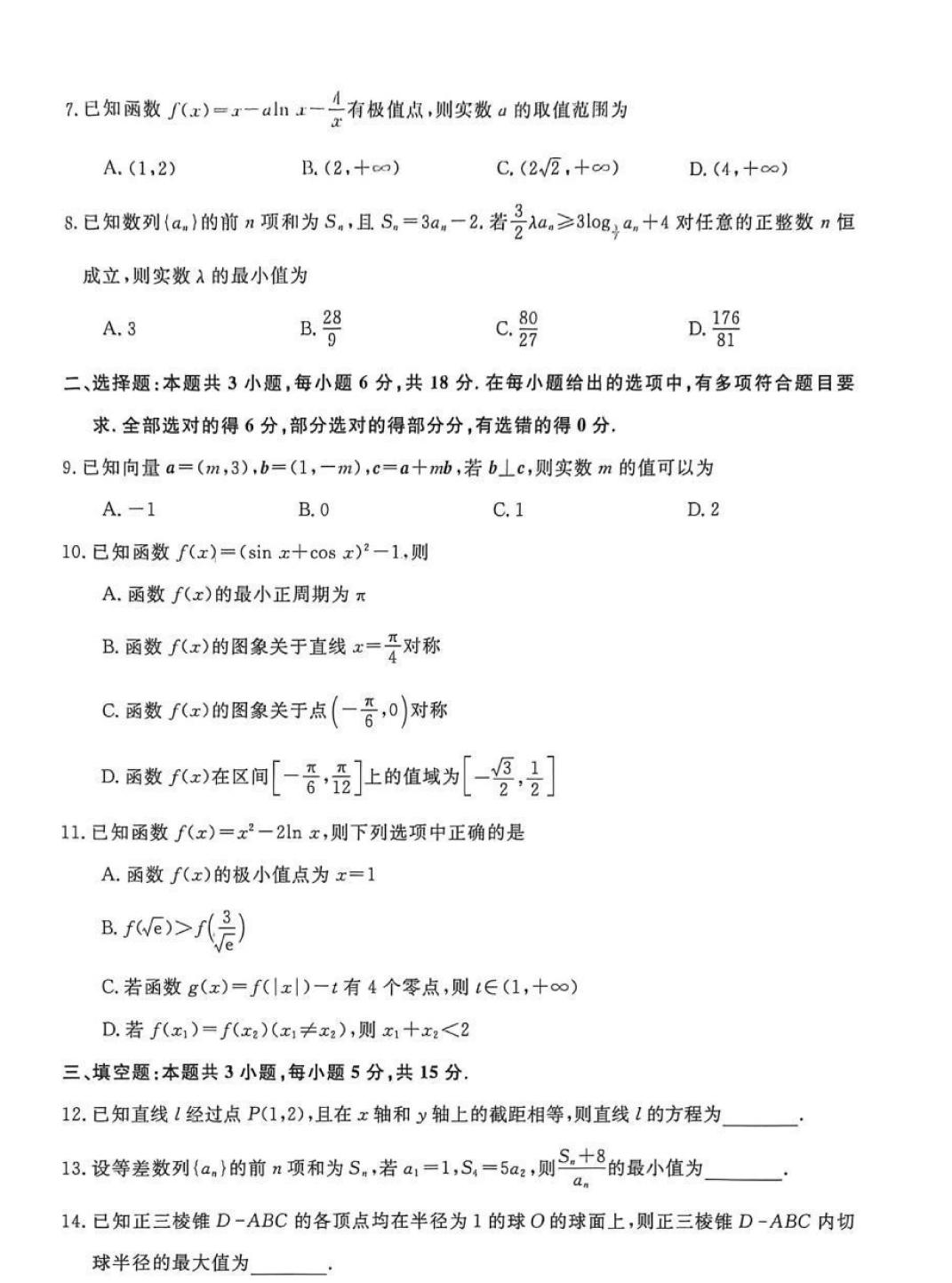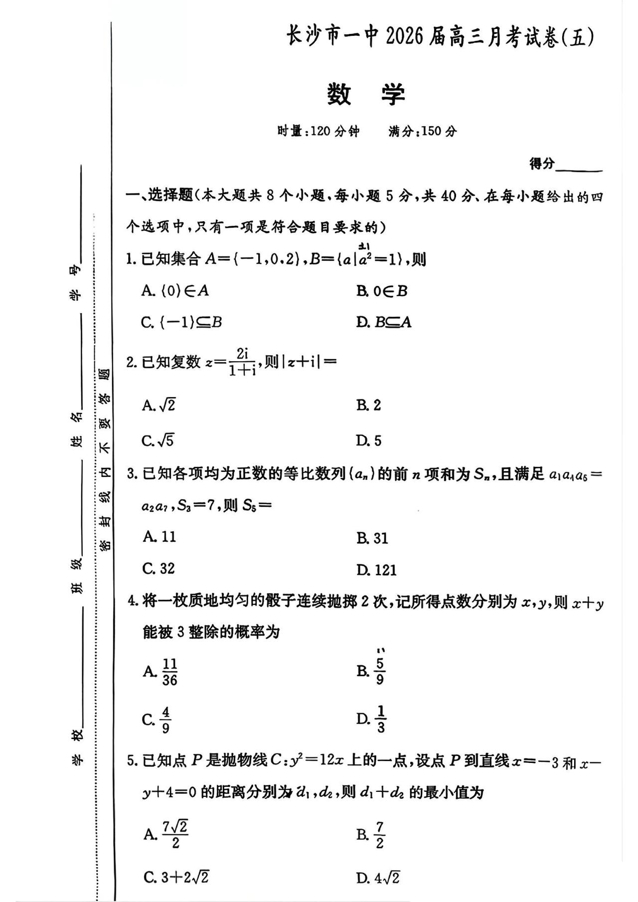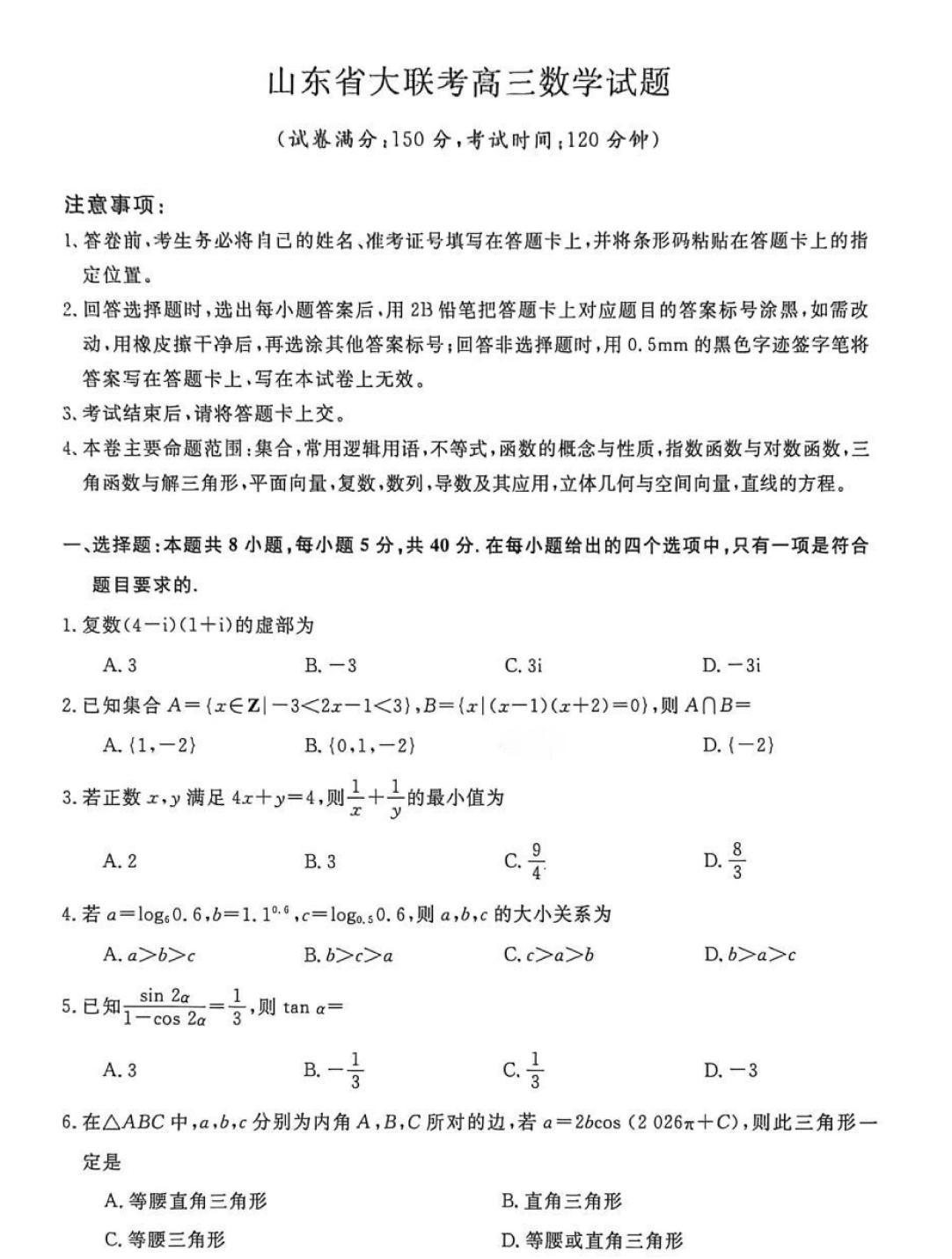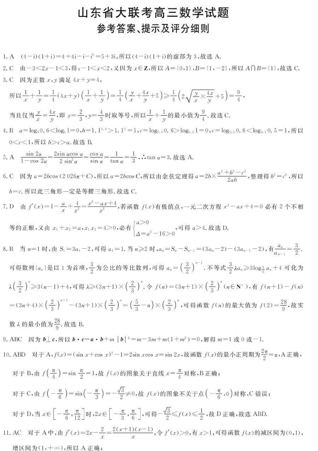 山东省大联考2026届高三上学期12月月考数学和湖南省长沙市一中高三12月月考(五)数学单选题多选题填空题及其详细解答。