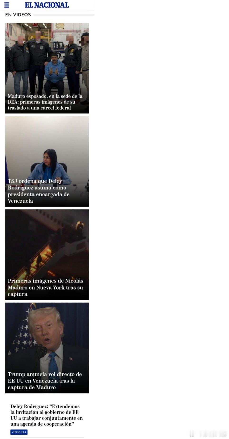 烽火问鼎计划 ①马杜罗被铐住,身处美国缉毒局总部:首次公开其被转移至联邦监狱的画面②委内瑞拉最高法院下令德尔西·罗德里格斯担任委内瑞拉代理总统。③尼古拉斯·马杜罗被捕后首次亮相纽约④特朗普宣布美国将在委内瑞拉问题上发挥直接作用,此前马杜罗被捕由Cortesia提供2026年1月4日 凌晨12:14(来源:委瑞内拉国家报)(一共四张图片)