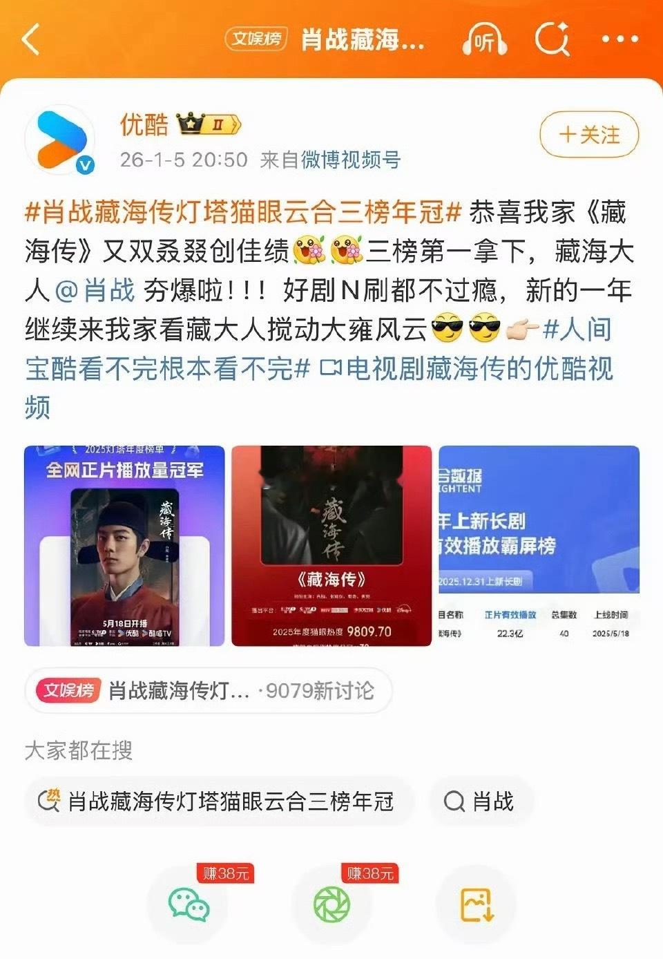 藏海传2025拿了30个冠军数据到商业价值全拉满,年度剧王在手,优酷确实有得瑟的