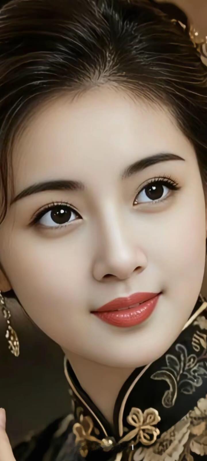 惊艳的古典美人,红唇与黑衣的完美搭配,尽显东方韵味。
