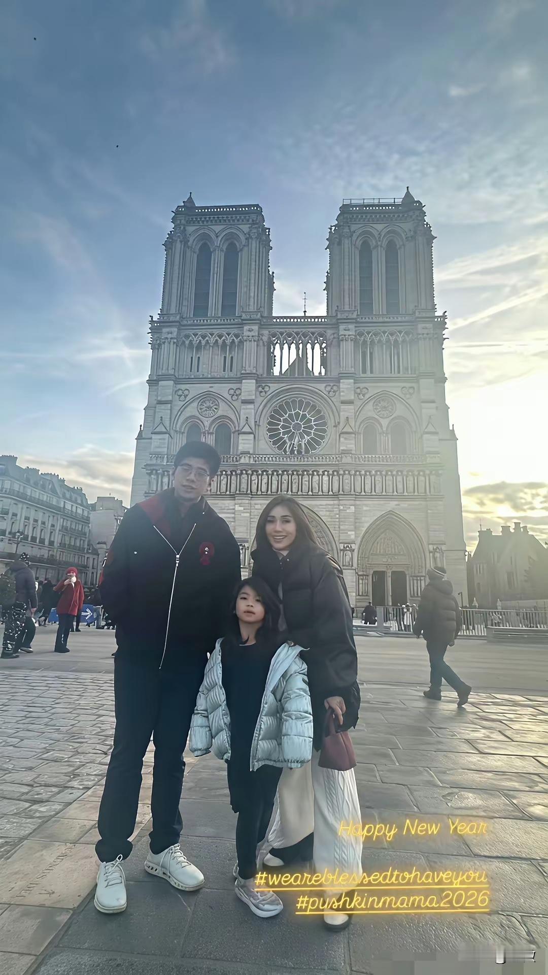 赌王女儿何超盈和老公女儿在巴黎游玩的照片,何超盈的老公比她小八岁,还是哈佛的高材生, 看着好年轻,像一个大学生