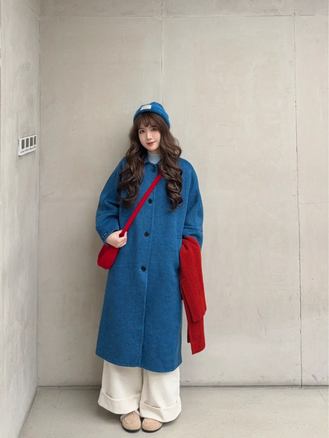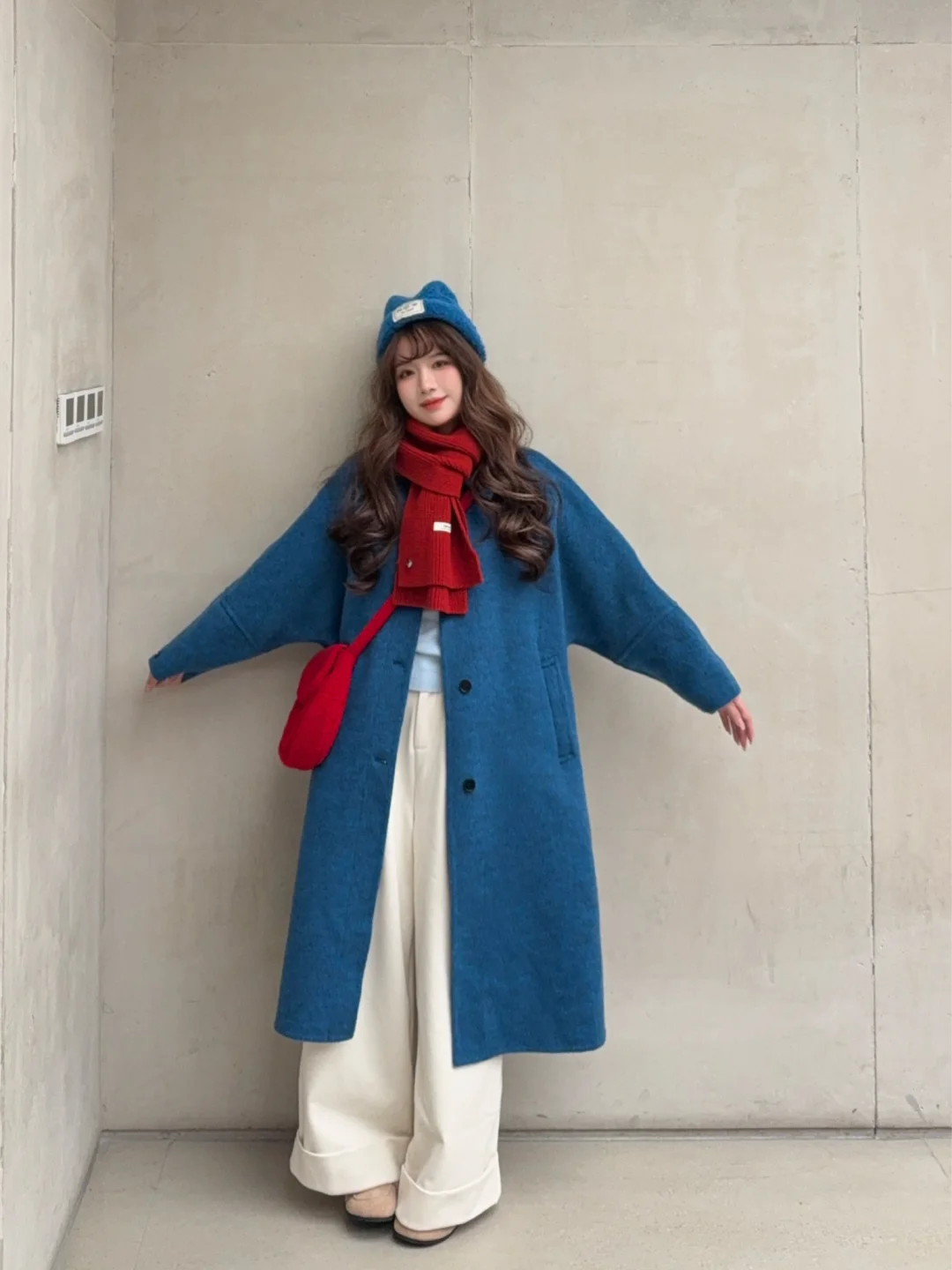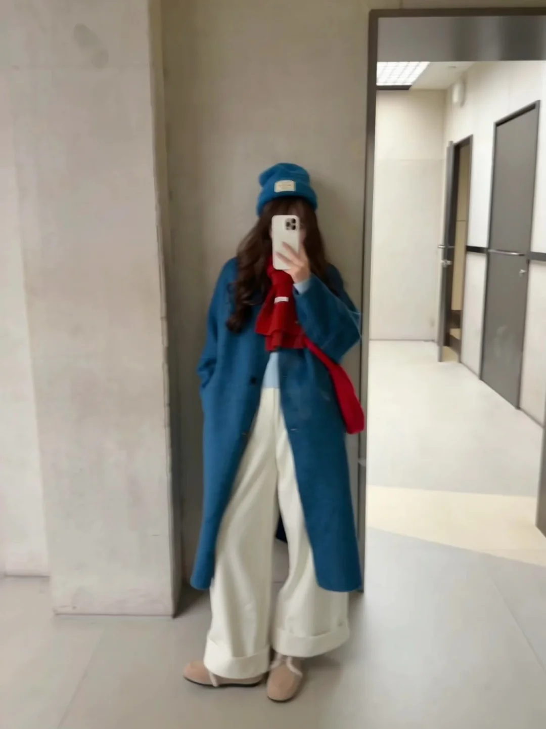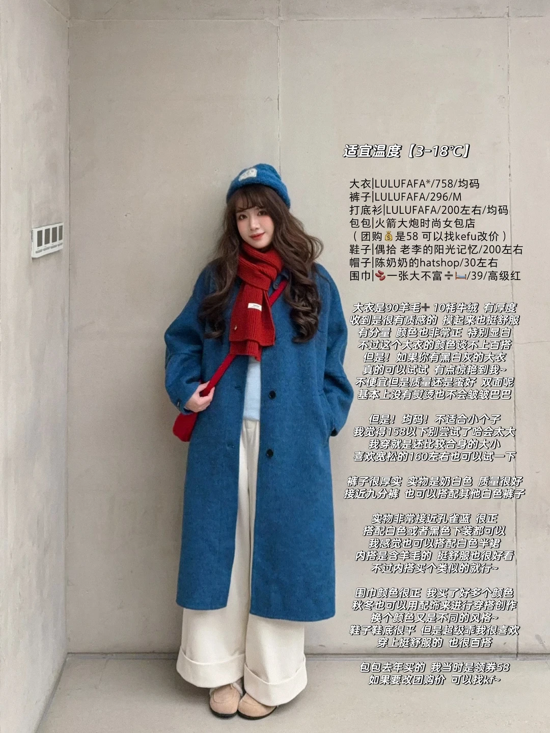 上次有姐妹说想看孔雀蓝/湖蓝色大衣