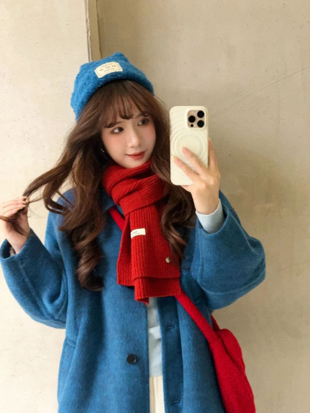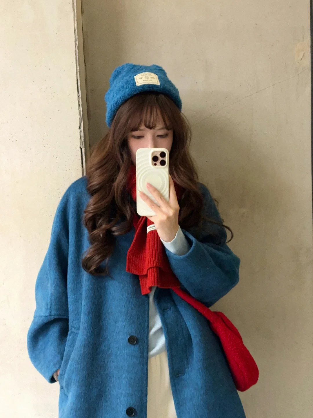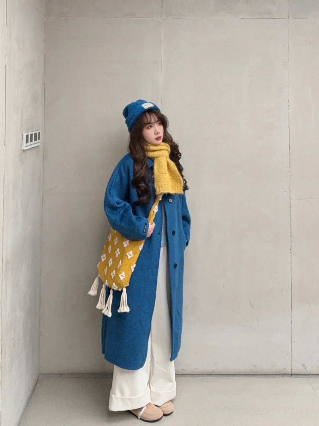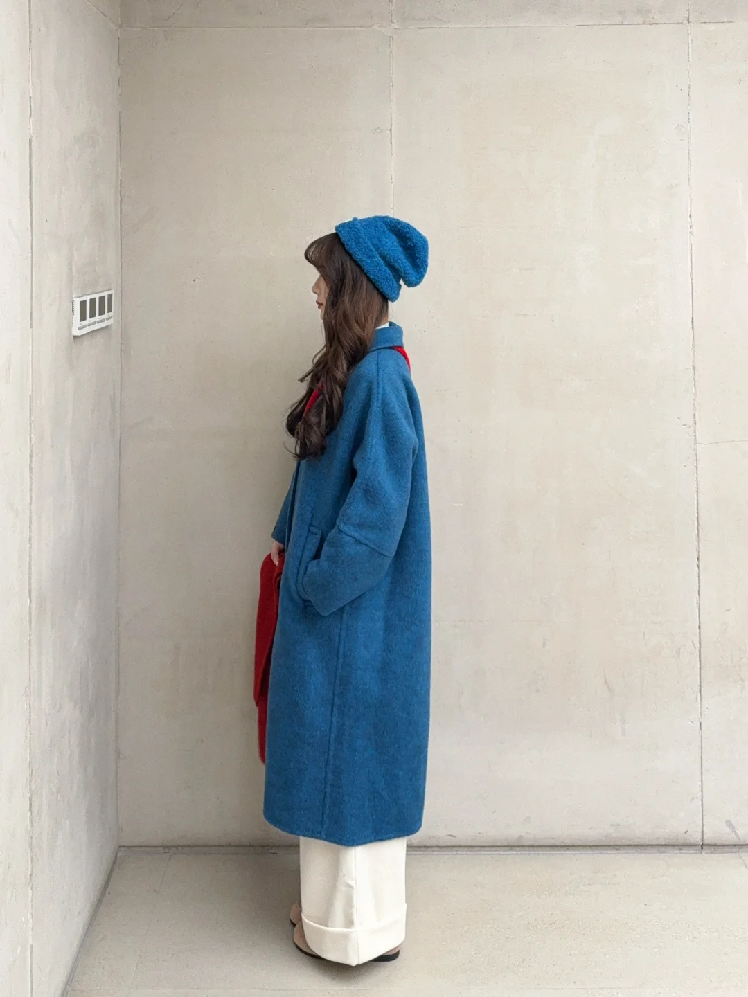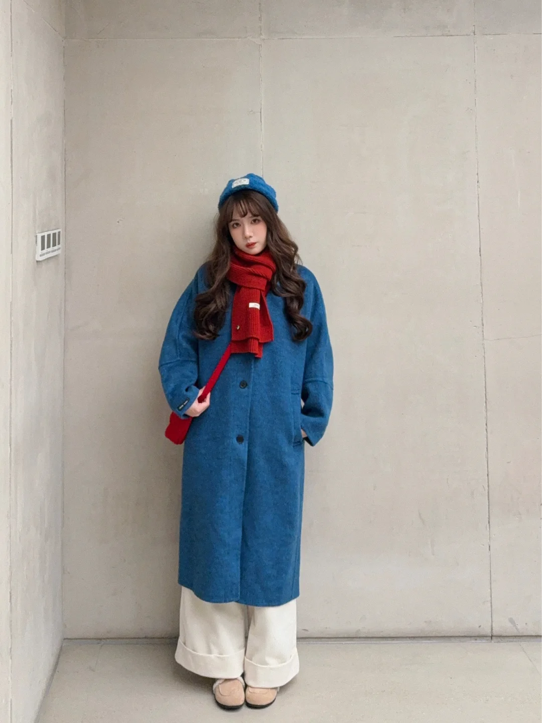 上次有姐妹说想看孔雀蓝/湖蓝色大衣