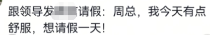 跟领导请假:周总,我今天有点舒服,想请假一天!