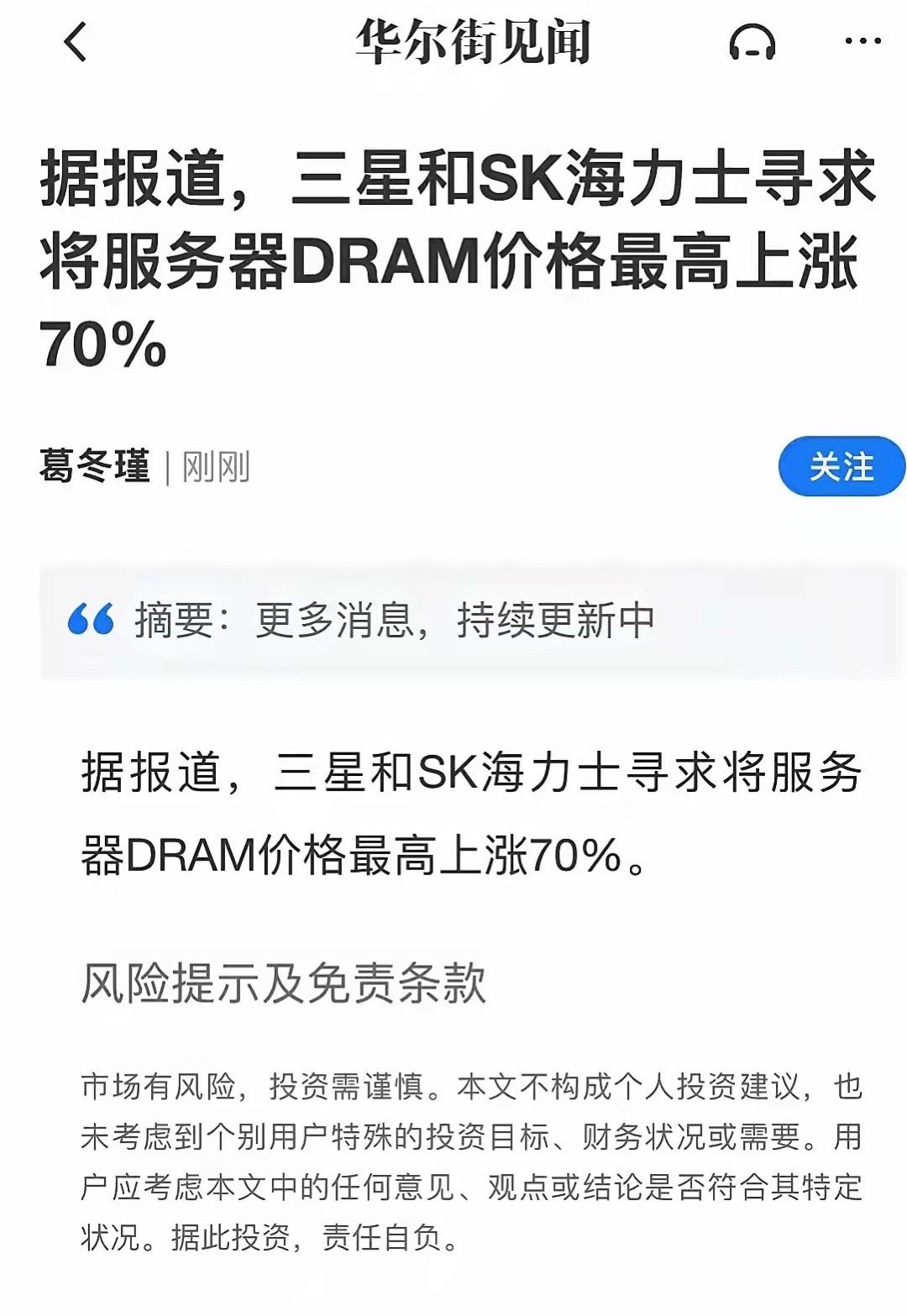 存储芯片又迎来大利好:三星寻求涨价70%今日A股存储芯片板块大涨,主要是受美股存储芯片美光科技涨超10%、股价创历史新高,闪迪大涨16%的影响,加上存储芯片涨价强预期和调整到位,龙头股纷纷大涨,涨幅如下:江波龙15.73%香农芯创12.93%德明利7.77%北京君正9.10%兆易创新10.0%。可以说是涨势如虹。盘后华尔街见闻消息:韩国三星和SK海力士准备将服务器用存储芯片涨价70%。只是没有点明消息来源。预计此消息将对存储芯片板块形成正面影响,明天存储芯片仍然值得期待。