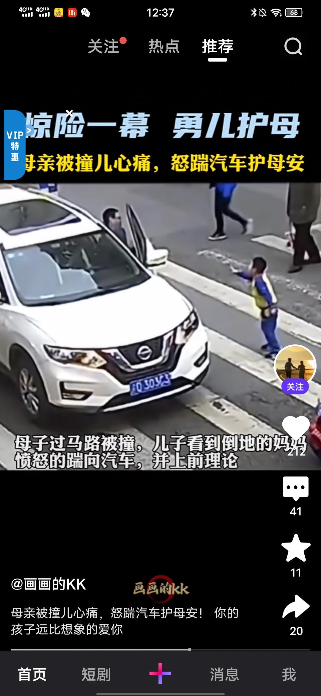 爱不是这样证明的! 母亲被撞儿心痛,怒踹汽车护母安!你的孩子远比想象的爱你! 一个自媒体平台账号上看到的这个视频,然后动漫画了,视频中一对母子过马路,母亲拉着几岁的男孩,过斑马线走到马路中间的时候,被一辆刹车不及的轿车撞上了,妈妈被撞在地,几岁的儿子爬起来,在车上怒踹一脚,然后手指车主说着什么,大概是理论的话吧,然后画面就转换成漫画版,来一句,你的孩子远比你想象中爱你! 确实,事实就是孩子比自己想象中更爱自己,这在很多方面都可以体现的,但是这个视频中的做法就提醒大家一定不要模仿!首先,从视频看,对向车道的车还在畅行,说明这是车辆机动车道的绿灯正常行驶时间,这时候过马路的行人就是闯红灯。这个违规行为,行人是有责任的。 再说就算像有些人说的,有些地方路口只有斑马线,但是没有红绿灯,那么既然这样,行人是不是应该有常识,自己是血肉之躯,不能和机动车这类机械化的大物件抗衡,是不是应该给自己留够过马路的时间,眼睛长起来还有一个功能是观察,确保自己过完马路前车还没有靠近?自己的生命安全掌握在自己手中,自己要为自己的安全负责。马路不是自己家中的,过马路前先观察开车,确保安全再动,不要有侥幸心理。 另外,我也很赞美和感谢那些有素质的懂礼让的车主,但是要搞清楚,并不是每一个人都有同理心和礼让的素质,所以,最重要的还是要靠自己保护好自己的安全! 不管那视频中的是真真是假,大家都多注意安全始终是对的,祝愿所有好人心灵干净的人都一生平安!