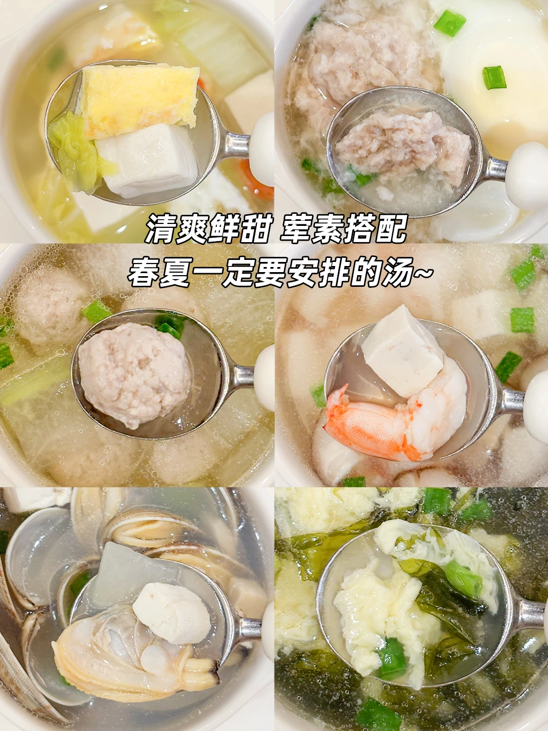 一周营养清爽补钙汤,清爽不油腻,简单食材搭配,搭配出来的味道真的很鲜美。 春季平时可以多做这6款营养汤给孩子吃,一道道简单又营养,补钙补锌补蛋白~ 🥬白菜豆腐汤(白菜 鸡蛋 豆腐 枸杞) 🥩山药肉饼汤(山药 鸡蛋 肉末) 🥒冬瓜肉丸汤(冬瓜 肉末) 🍤三鲜菌菇汤(香菇 海鲜菇 虾仁 豆腐 鸡蛋) 🥩紫菜肉片汤(肉片嫩滑 营养鲜美 ) ▫️花蛤冬瓜汤(花蛤 冬瓜 豆腐) ‼️食材大小根据宝宝的咀嚼能力处理