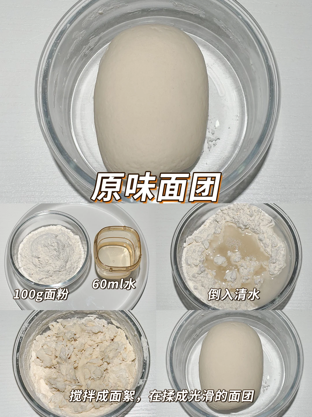▫️原味面团: 100g面粉,60ml水,1g酵母