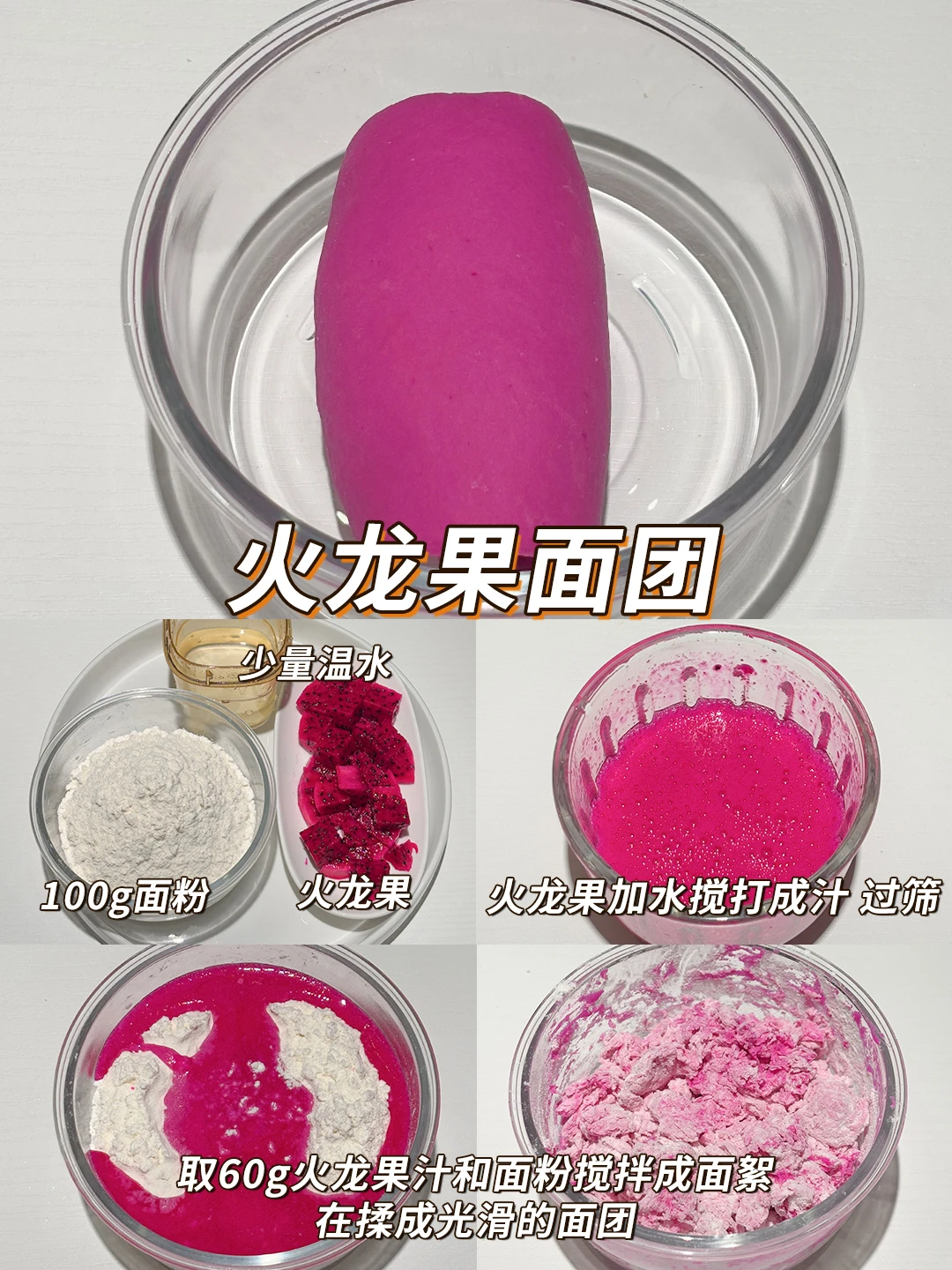 ▫️火龙果面团:100g面粉,60g火龙果汁,1g酵母