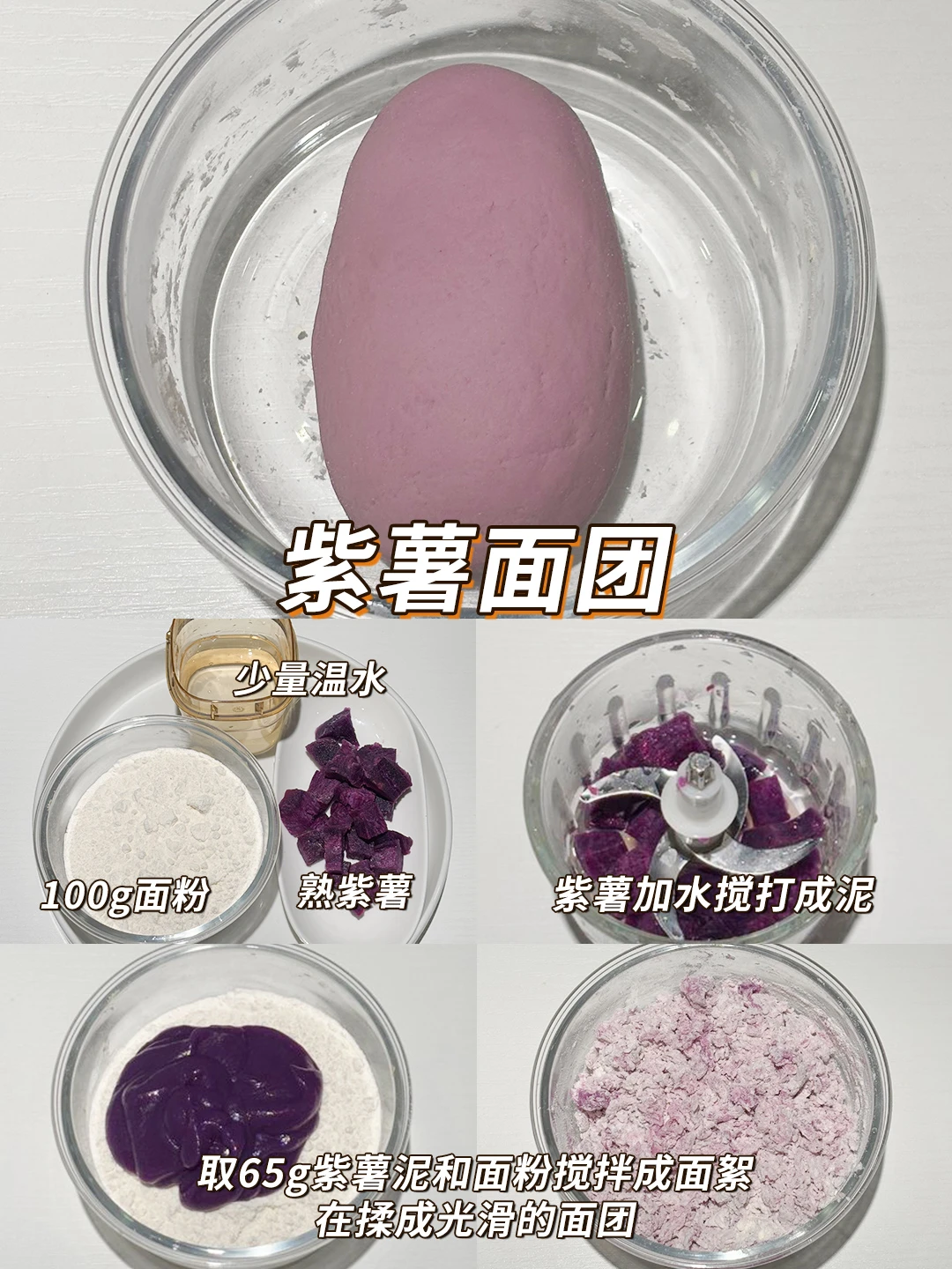 紫薯面团:100g面粉,65g紫薯泥,1g酵母