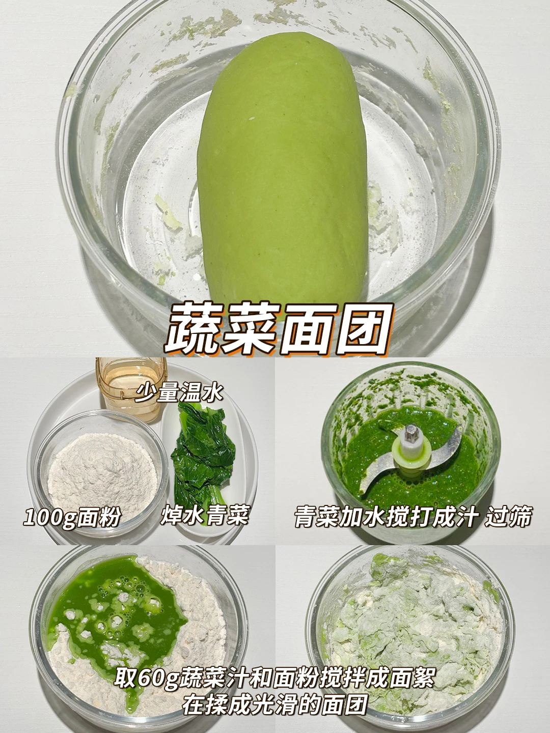 🥬蔬菜面团:100g面粉,60g蔬菜汁,1g酵母