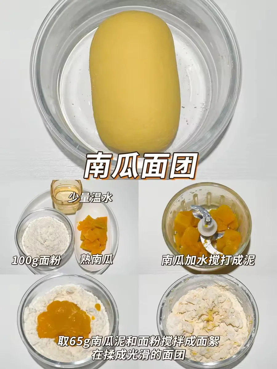 🎃南瓜面团:100g面粉,65g南瓜泥,1g酵母