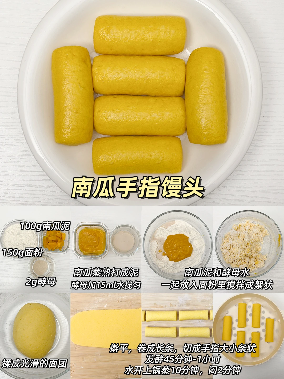 150克面粉,100g南瓜泥,2克酵母+15ml水
