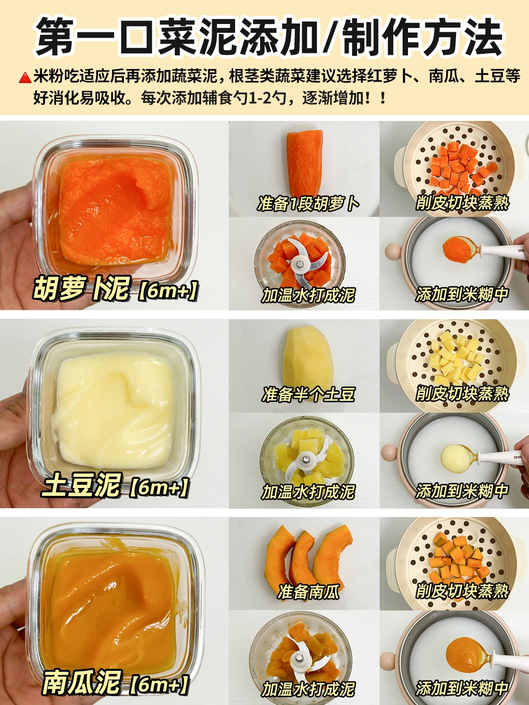 宝宝辅食第1口添加合集‼米糊菜泥肉泥做法!