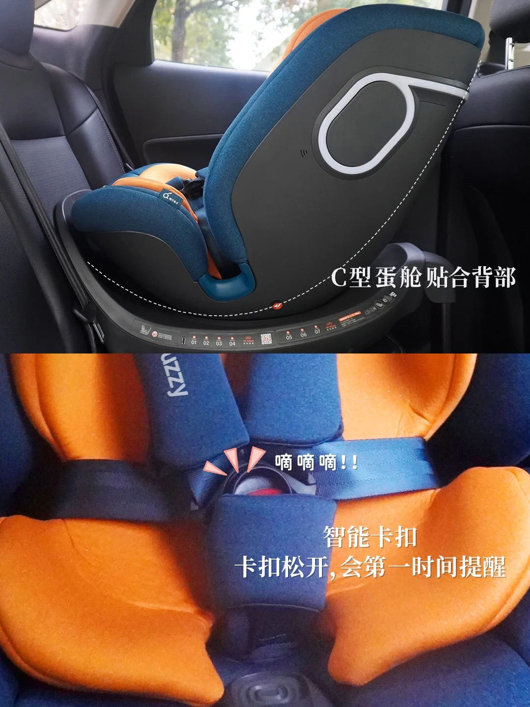 ✅以我家现在用的两只兔子智能安全座椅求知2Pro为例,C型蛋舱+仿母体结构,符合宝宝的脊柱发育,宝宝坐着舒服,也肯坐。安全上有i-Size E1严苛认证,ISOFIX硬接口+支撑腿抗翻转结构。
