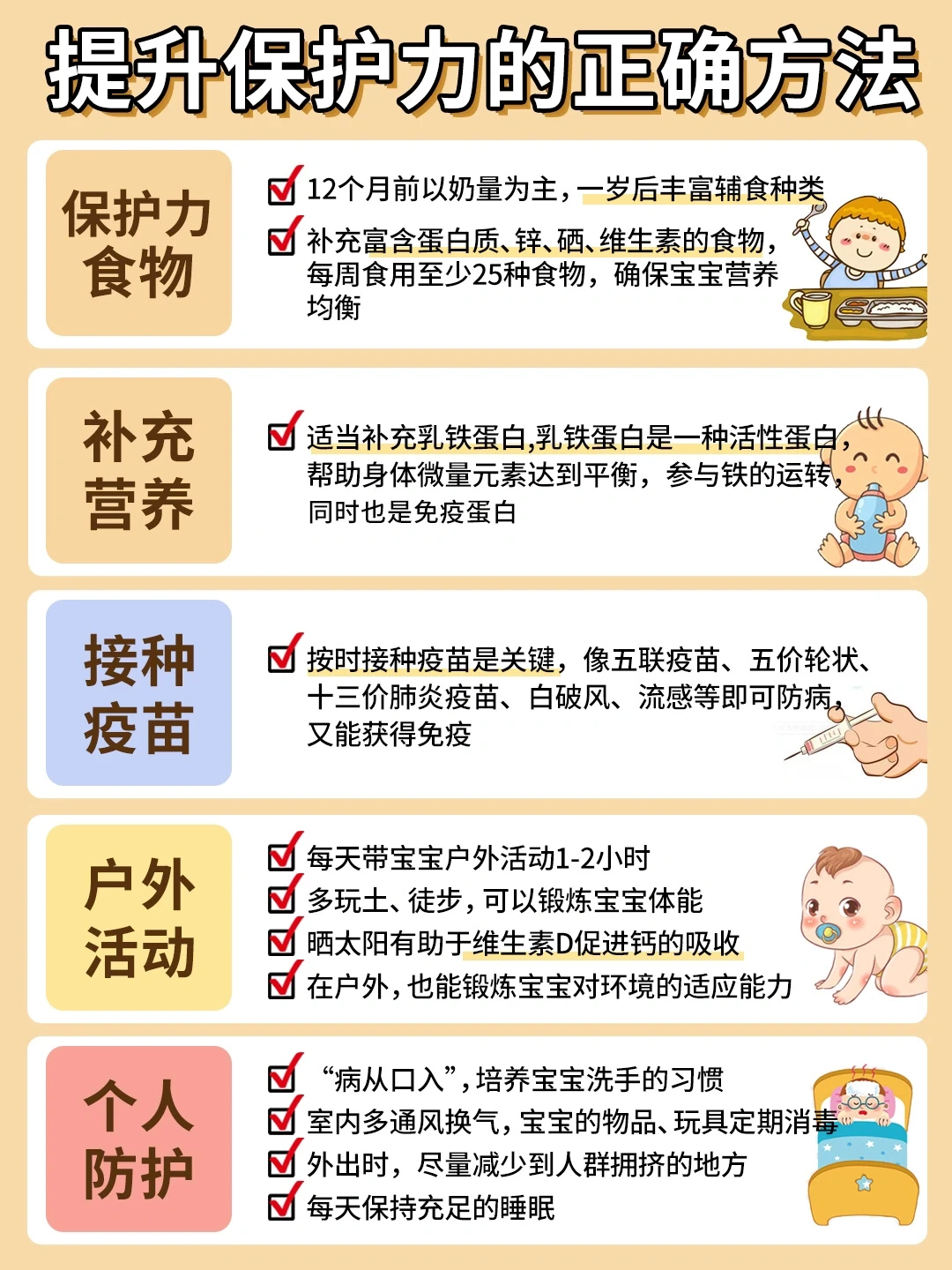 ⭕️所以要提升宝宝保护力,可以从这五方面入手