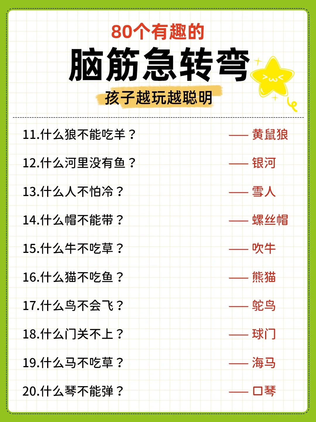 80个有趣的脑筋急转弯‼️满足孩子求知欲🤔
