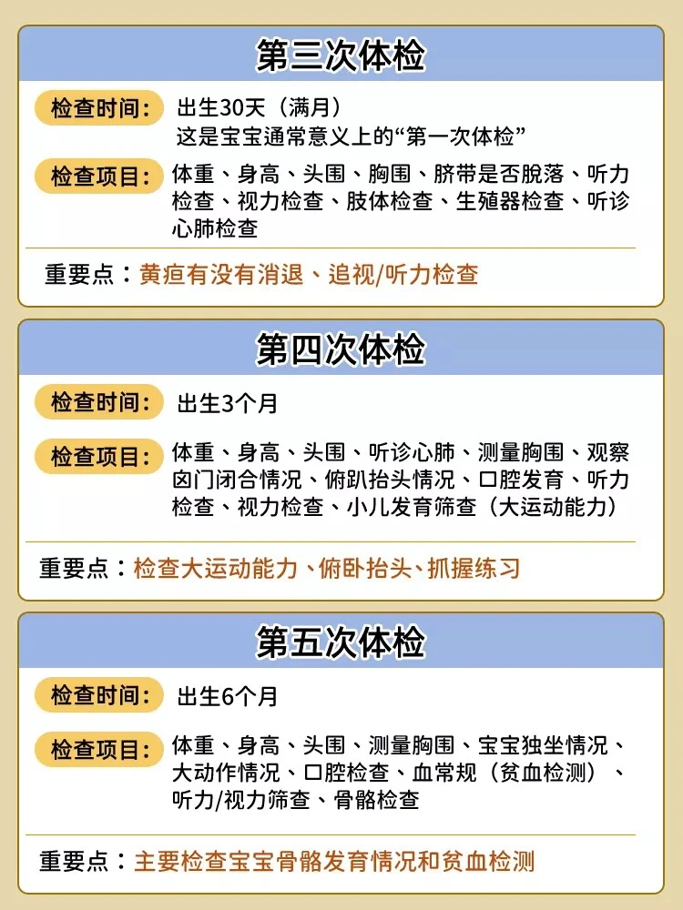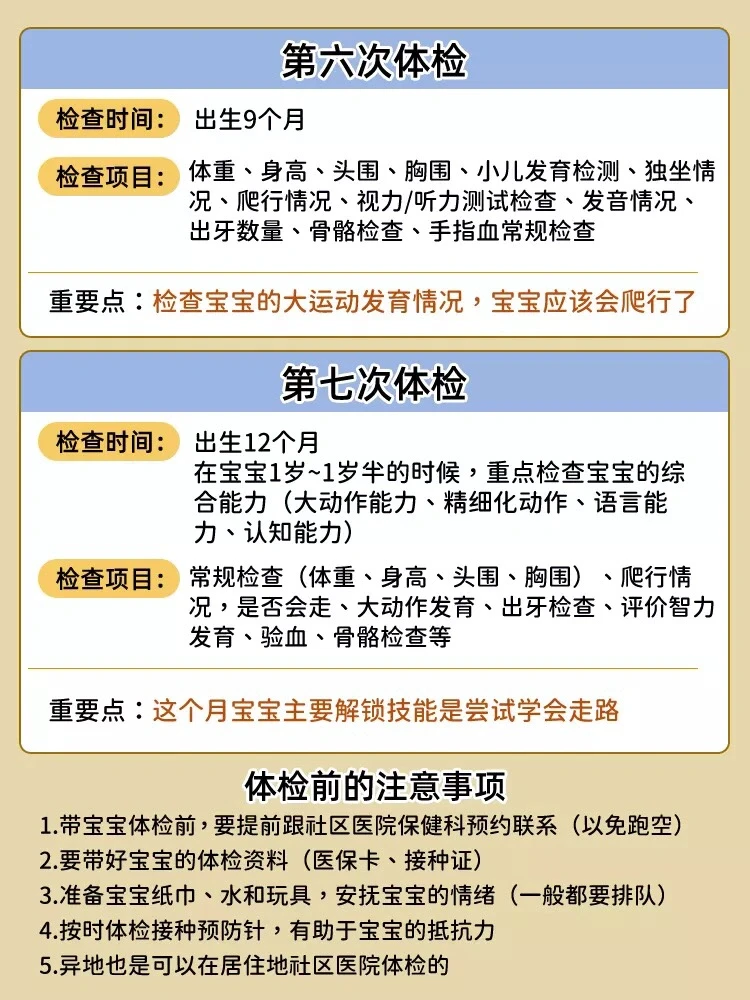 总结一年来带小汤圆去体检的时间和项目⁉️👶0-12个月体检是比较频繁的,每个时间段的体检的项目也不一样,🤙我整理在上面图片上,新手妈妈可以参考。