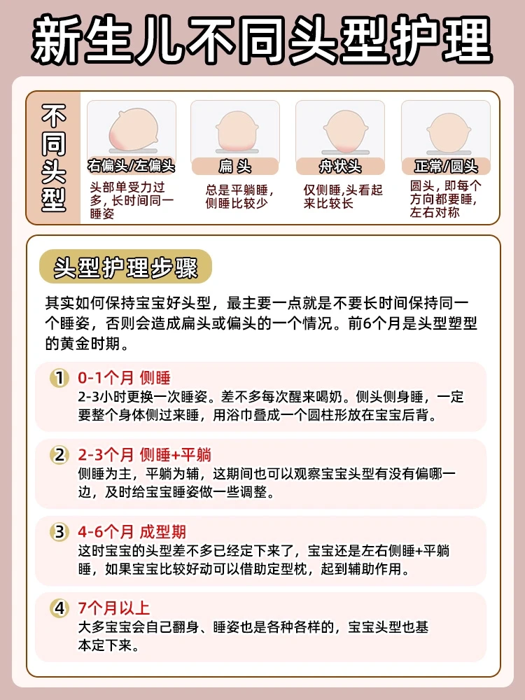 6.头型:不要长时间保持同一个睡姿,容易造成扁头或偏头。