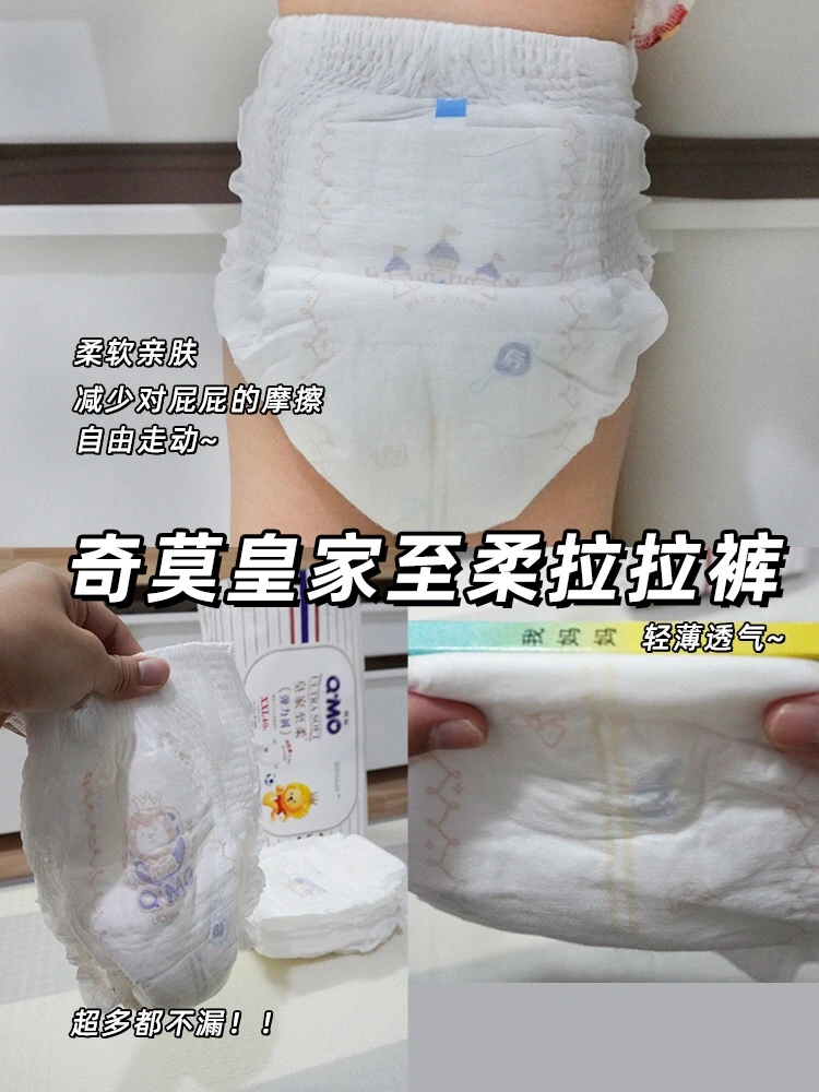 👩现在秋冬季节,宝宝皮肤更容易泛红,所以这次我给我家小汤圆选的是柔软的奇莫皇家至柔拉拉裤,他们家用的面料是亲肤的柔软纤维噢,腰围是采用超声波粘合工艺的,整片纸尿裤都软乎乎的,减少pp与纸尿裤的摩擦~