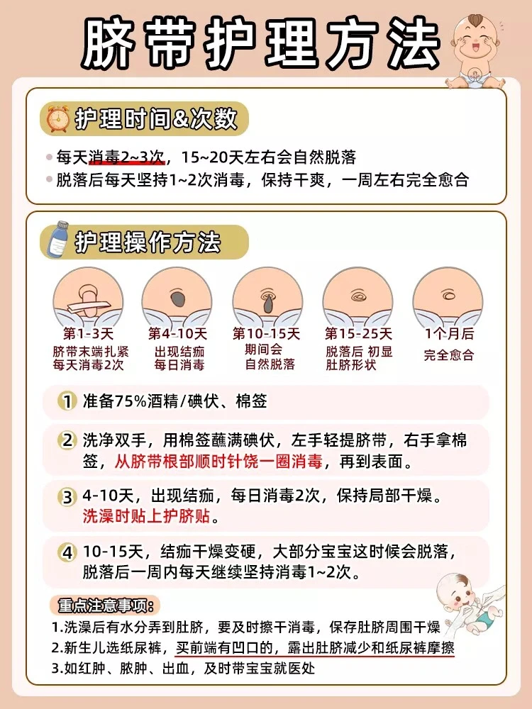 1.每天消毒2-3次,15-20天左右会自然脱落。