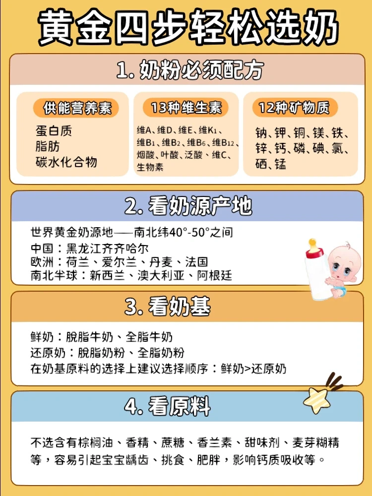 ⭕️新手妈妈们,也可以根据以上5点选择,选择适合自己宝宝体质,营养成分尽可能丰富的奶粉‼️