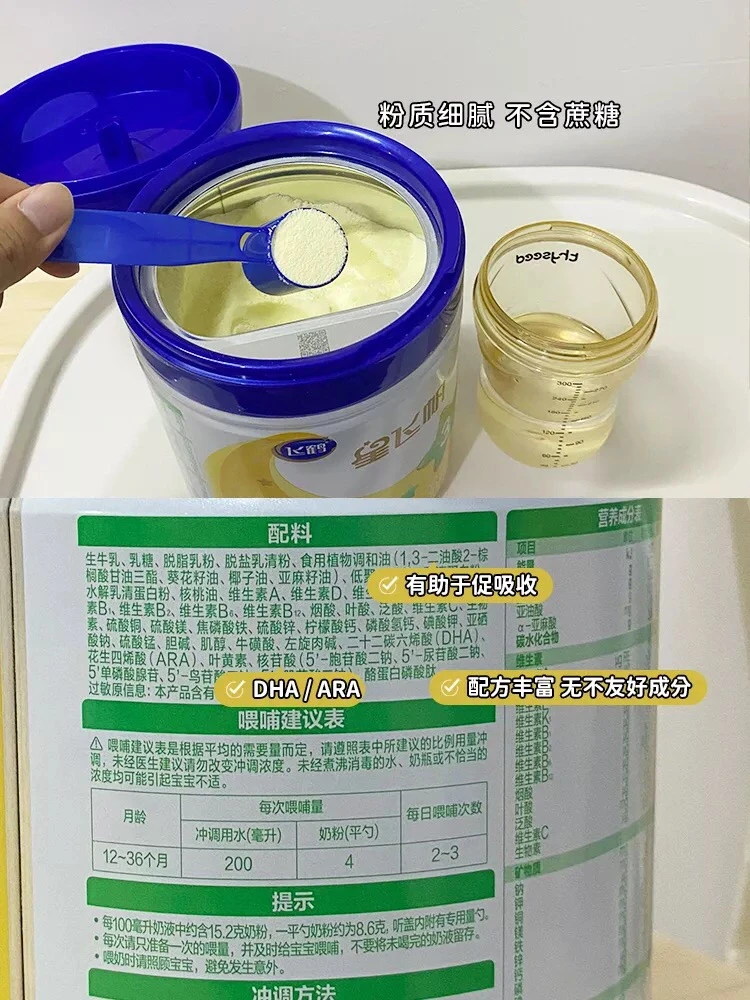 所以我给娃入手了飞鹤星飞帆,🤙它升级了新国标配方,将DHA/ARA=1:1.7,贴合黄金比例,还有新一代OPO,sn-2棕榈酸含量达67%,还有益生元、CPP等都是亲肠胃帮助吸收的成分。另外还含有在活性蛋白OPN,给足宝宝满满的自护力宝营养还挺均衡丰富的,并且也不含蔗糖等不好成分。