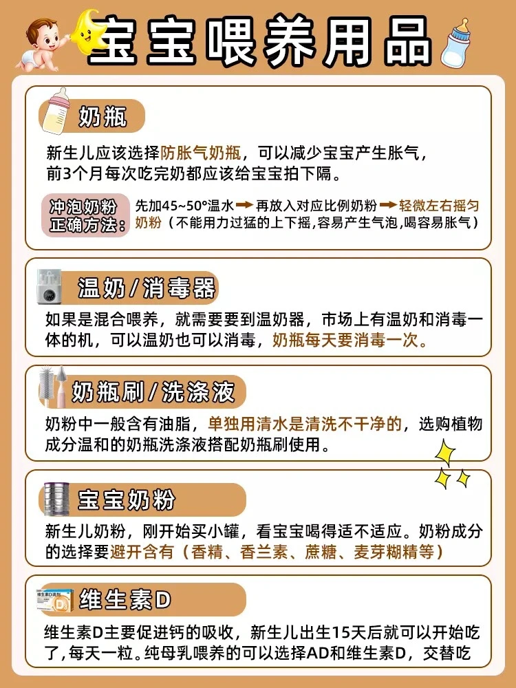 1.奶瓶:选择防胀气奶瓶,每次吃完都要给宝宝排出隔