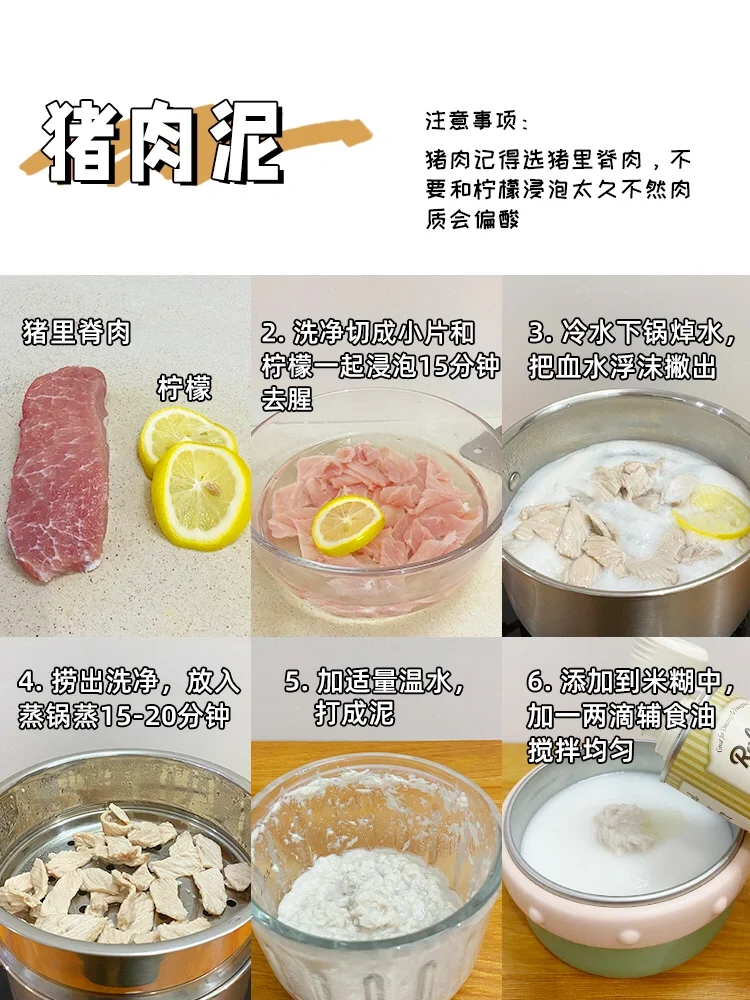 ✅刚开始先纯肉泥可以和米糊一起搭配,吃三天观察宝宝有没有过敏反应。之后在和蔬菜蛋类混合搭配吃。