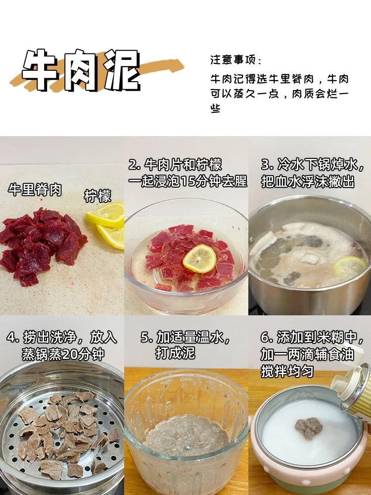 🥩鸡肉泥/猪肉泥/牛肉泥做法一致: