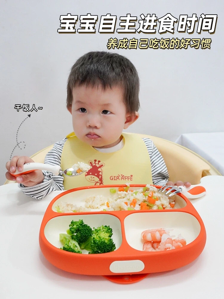 👶宝宝在自主进食时,接触最多的就是叉勺和餐盘,且每天都要消毒清洁,👉所以要选择长时间耐高温的材质。所以入手世喜家的硅胶餐盘和3D不锈钢叉勺。