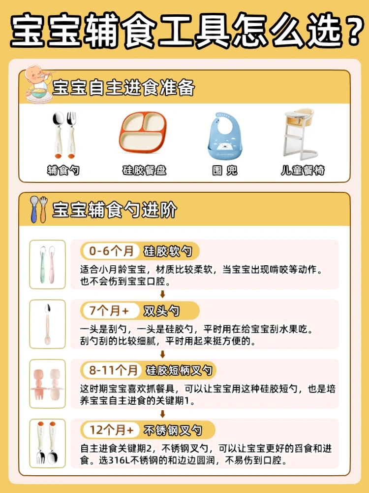 🔸进食方式:自主进食关键2,可以换不锈钢叉勺,可以让宝宝更好的舀食和进食。