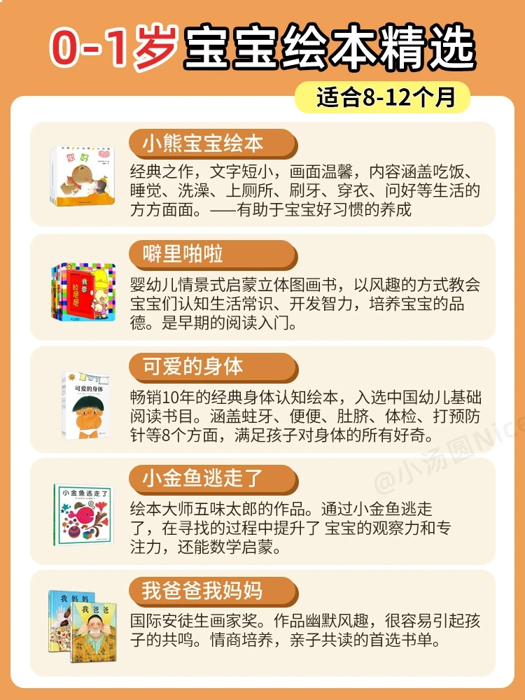 🌈 下面分别整理了0-12个月宝宝的绘本,新手爸妈可以参考下哦