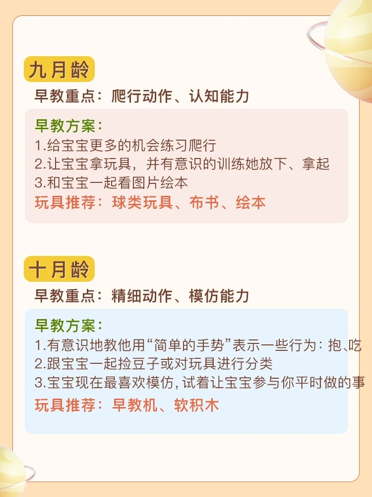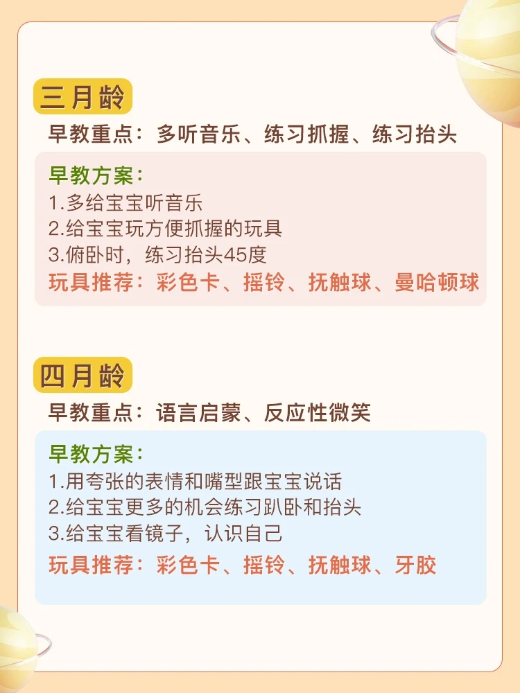 🌈每个月都有不同的训练方案,根据宝宝正在发育阶段能力相结合。有目的的培养宝宝,可以事半功倍的提升宝宝手眼协调能力+认知能力+语言能力[派对R][派对R] 简单明了,操作性强, 在家就可以轻松做早教,给宝宝做起来