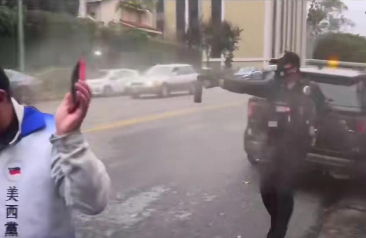 安保大哥“单枪匹马”斗独蛙,激起蛙声一片:救命啊,救命啊! 近日,游手好闲的旅美小独蛙们,在中领馆门前的马路上蹦跶,不停朝领馆呱呱叫,气焰十分嚣张! 安保大哥起初好生相劝,让蛙子们速速离开,奈何,蛙子们执迷不悟,以为咋不了他们,还冲着安保大哥一顿狂吠。 终于,安保大哥怒火中烧,麻利的抽出腰间的辣椒水,对着蛙群一阵狂喷,这一招效果很好,蛙子们被喷的东倒西歪,趴在地上喊救命! 不一会,蜀黍来了,带走了安保大哥! 上警车的路上,安保大哥眼神坚定,身姿挺拔,怒视这群“蹦跶蛙”!