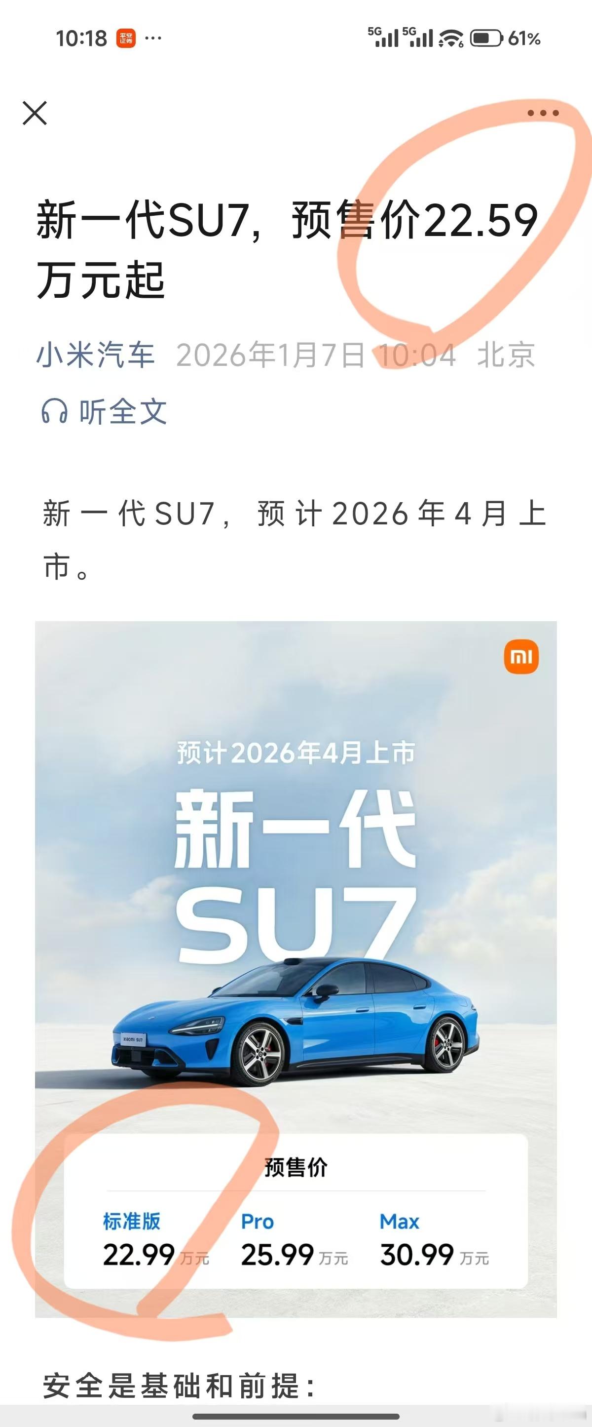 雷军官宣新一代SU7这次改款的重点是✅400v平台升级到800V平台✅门把手增加了机械结构 BTW,图三这是啥情况,官泄吗🤔 到底多少钱