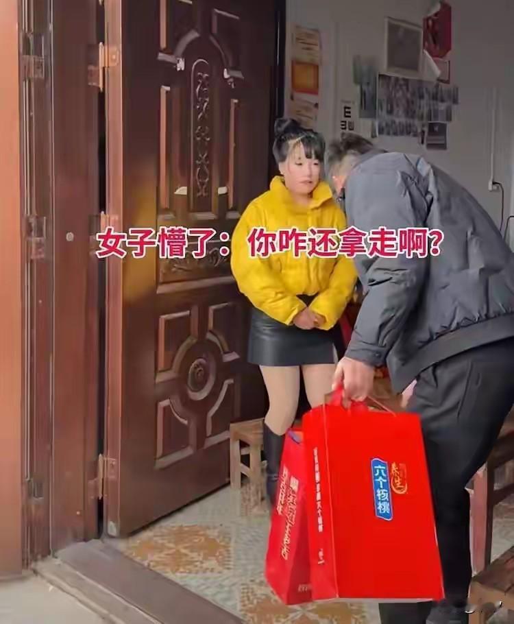 农村相亲出现这一幕, 小伙子提着两箱礼品, 直接就上了女生家门, 女生穿着黄色的棉衣, 下身穿着紧身皮短裙加皮靴, 看起来也是相当的会打, 脸上还画着淡淡的妆, 大哥一看就是老实人, 双方坐在堂屋中间聊天, 但是还没有说两句, 女生就表示没看上大哥 大哥也不磨叽, 拿起两箱礼品就准备走, 女生直接站了起来, 非常疑惑的质问大哥, 咋了?你这礼品还要带走? 大哥也没惯着她, 你都没看上我,咱俩非亲非故的, 我买的礼品当然要带走了, 说白了就是不想让女生白嫖, 现在相个亲,成本也很高, 不管看没看上都要拿礼物, 这大过年的要是相个二三十次, 那也是一笔不小的数目, 况且自己的钱又不是大风刮来的, 礼品当然要多次利用才行, 大家对于农村相亲出现这样的情况怎么看? 相亲交友 女生相亲条件 女生相亲新要求 相亲习俗