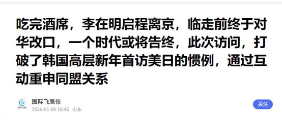 吃完了酒席,李在明启程离京,临走前终于对华改口,一个时代告终   要说这事儿有多颠覆,得先讲讲韩国那套传了几十年的 “规矩”。以前韩国新总统上任,新年第一次出国,脚底板先往哪抬几乎是定死的:要么飞华盛顿抱美国大腿,要么奔东京搞东亚联动,“先美后中” 是刻在政客骨子里的潜规则。   就像上一任总统尹锡悦,2022 年上台后一门心思贴美国,别说访华了,连中韩外长会都断了六年半,硬生生把两国关系逼到了冰点。可李在明偏不按常理出牌,2025 年 6 月刚执政,半年多就敲定访华。   2026 年 1 月 4 号直接带着 200 多人的团杀到北京,成了今年首个访华的外国元首,把美国那边的邀约都往后排了。这种 “反常规操作”,明摆着是告诉外界:韩国的外交天平,不能再光往美国那边歪了。   为啥非要改路子?还不是尹锡悦时期的教训太惨痛。这位前总统把 “亲美反华” 玩到了极致,结果把自己玩崩了。   本来韩国一直是 “安保靠美国,经济靠中国” 的两头沾模式,尹锡悦却非要搞 “一边倒”,跟着美国搞印太战略,加入芯片四方联盟,还限制对华高科技出口。   这下可好,2024 年韩国对华芯片出口直接跌了 44%,丢了三成中国市场,三星、SK 海力士这些巨头工厂开工率都上不去。   单月贸易逆差飙到 127 亿美元,创下建国以来最高纪录,船舶业订单还被中国抢了头把交椅。外交上更尴尬,尹锡悦喊着 “台湾问题是全球问题”,触碰中国红线,结果釜山世博会申办直接失败,朝核问题上也得不到中国支持。   到最后,他的支持率跌到 19%,国会选举执政党惨败,自己还成了韩国史上首位在职被捕的总统,这糊涂账算是彻底算不清了。   李在明这趟北京之行,说是 “纠错之旅” 一点不为过。四天三夜的行程安排得满满当当,北京的国宴、会谈、商务论坛一个不落,还特意跑去上海参观大韩民国临时政府旧址。   要知道 2026 年是这个旧址设立 100 周年,这趟行程明着是追溯抗日历史,实则是跟中国拉近距离,顺便敲打一下总想翻历史旧账的日本。但最关键的还是他那张嘴,终于把话说到了点子上。   面对 “涉台问题” 的提问,他没绕弯子:“韩中关系的根基就是建交时的原则立场,得尊重彼此核心利益。” 这话可比尹锡悦的 “全球问题” 中听多了,明摆着是给前任纠错,重新确认 “一个中国原则”。   他还说了句大实话:“跟美国搞安全合作是没办法,但不能跟中国对立,这对韩国没好处。” 这话算是戳破了韩国外交的窗户纸 —— 总想着讨好美国得罪邻居,最后吃亏的还是自己。   这趟访问的含金量,从随行的代表团就能看出来。200 多人里全是韩国商界大佬,三星、SK、现代、LG 的会长全来了,说是 “半个韩国经济圈” 都不为过。在中韩商务论坛上,李在明说得很实在:“以前总觉得韩国技术领先,现在中国在很多领域都跑前面了,得搞平等合作。”   这话里有谦虚,更有务实 —— 毕竟中国是韩国最大的贸易伙伴,出口占比四分之一,再不修复关系,韩国经济真要扛不住了。   果然,双方当场签了十多份谅解备忘录,从人工智能到美妆食品都有合作,韩国股市里跟中国合作密切的板块当天就涨了。这哪是访问,分明是带着企业家来 “抢订单、补损失” 的。   最值得琢磨的是 “时代告终” 这四个字。它不是说韩美同盟要散了,毕竟韩国的安全还得靠美国撑腰,李在明也没否认这一点。真正结束的,是那种 “为了抱美国大腿,不惜牺牲对华利益” 的愚蠢时代,是把外交变成 “选边站” 的僵化思维。   以前韩国总想着靠美国压中国,靠中国赚美元,结果两头都没讨好。现在李在明终于想明白了:邻居是搬不走的,生意是跑不掉的,与其跟着美国瞎起哄,不如踏踏实实跟中国搞合作。就像他说的,“韩中领导人该一年见一次”,这种常态化沟通,才是成熟邻居该有的样子。   临走时,李在明在机场补了句:“2026 年该是韩中关系全面恢复的元年。” 这话能不能兑现还得看行动,但至少方向是对的。   从尹锡悦的 “越走越偏” 到李在明的 “回头是岸”,韩国总算明白:外交不是小孩子过家家,不能看谁拳头大就跟谁走,得算清楚自家的利益账。   毕竟远亲不如近邻,要是连家门口的关系都处不好,再牛的同盟也救不了自家的经济。这个道理,韩国用六年停滞和一堆经济烂账才换来,也算没白交学费。