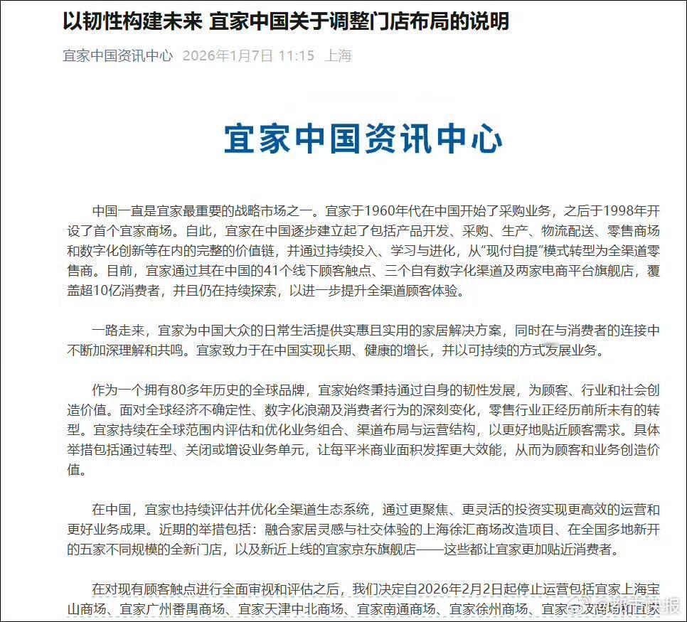 宜家一口气在中国宣布关闭7家门店! 关闭的7家门店为:上海宝山商场(2013年