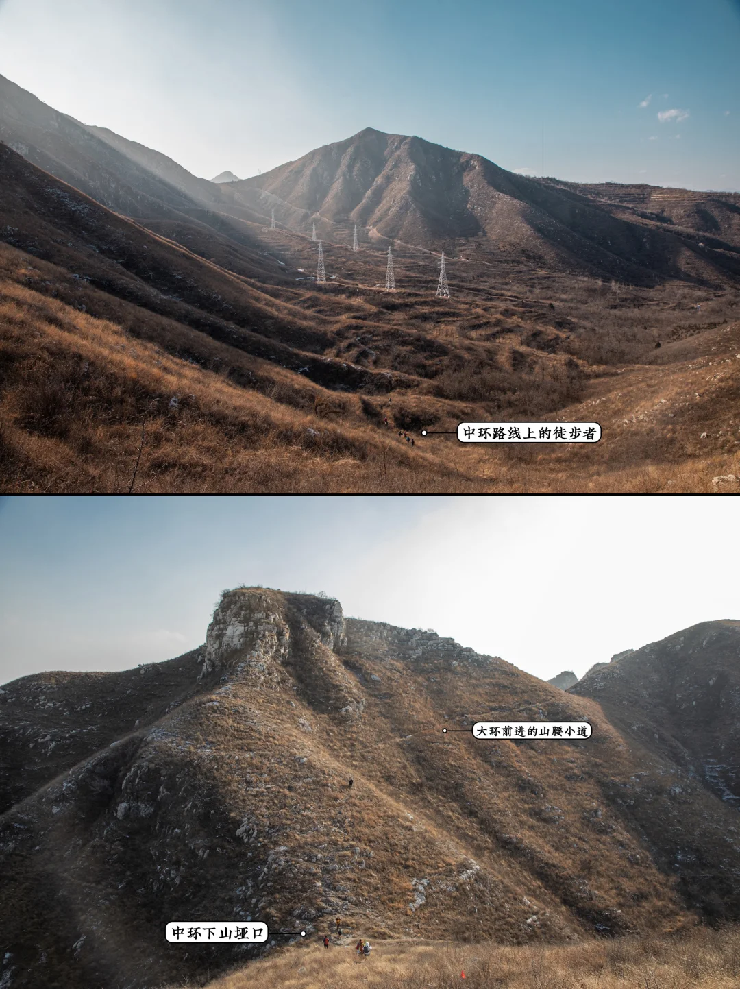 ❽周末中小环路线上的人还是比较多的,但大环去往许家尖的人稍微少点;从石板山顶后开始分流了