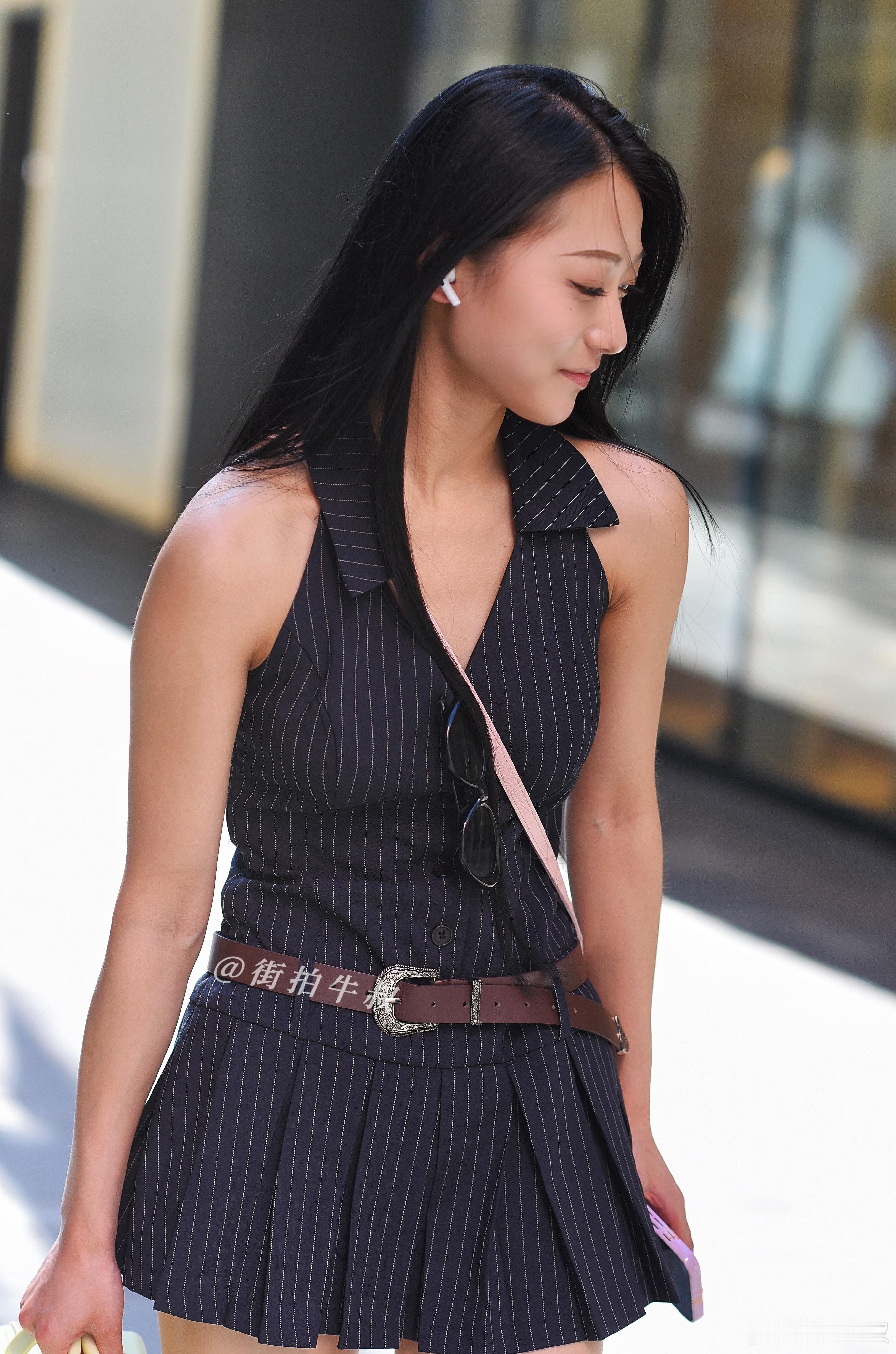 学院风的条纹西装裙