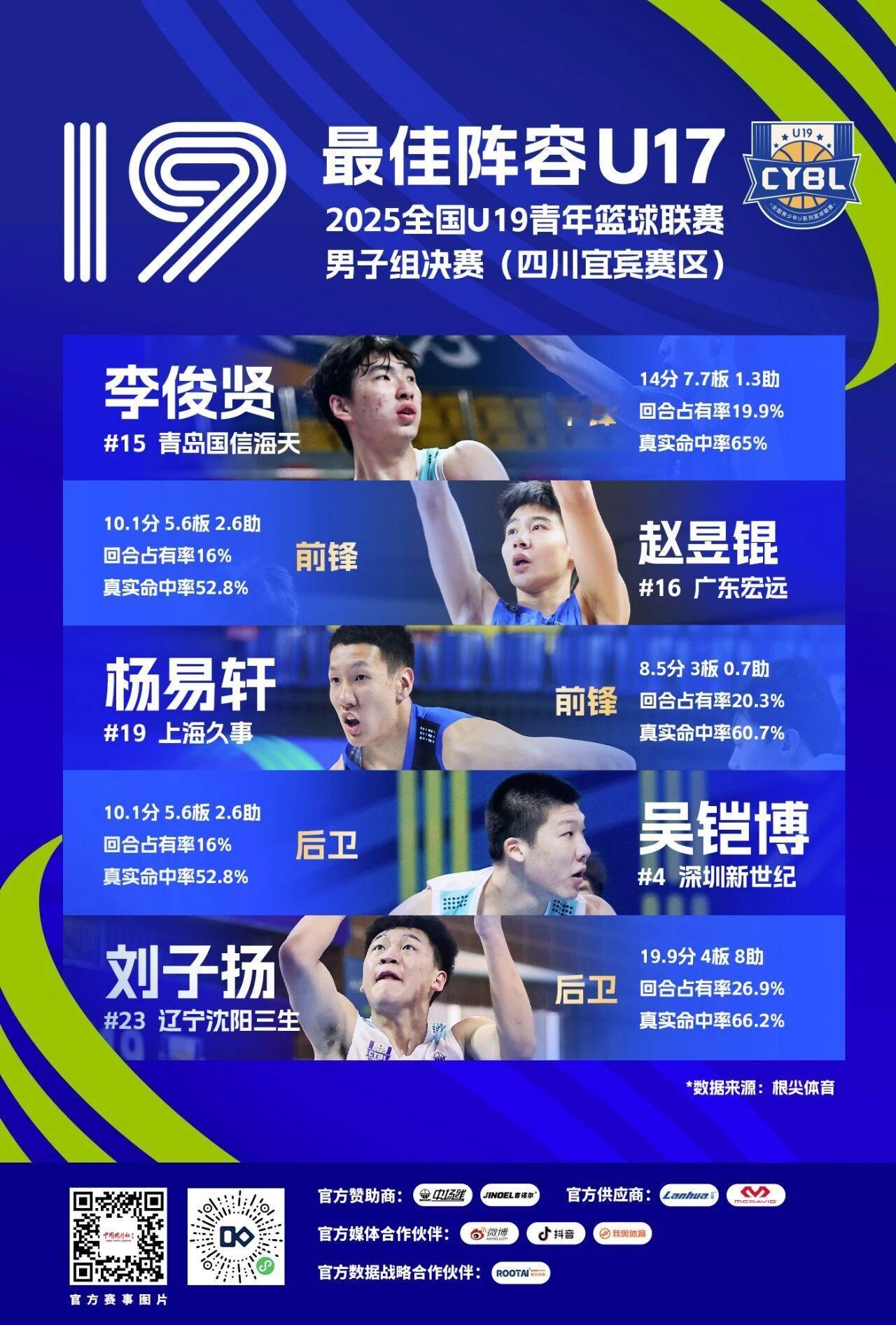 全国U19青年联赛本届跨级参赛球员较多,因此特别增设U17组别最佳阵容。辽青球员刘子扬,凭借19.9分4篮板8助攻的表现入选。辽宁男篮