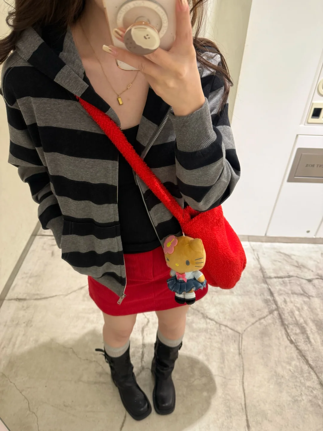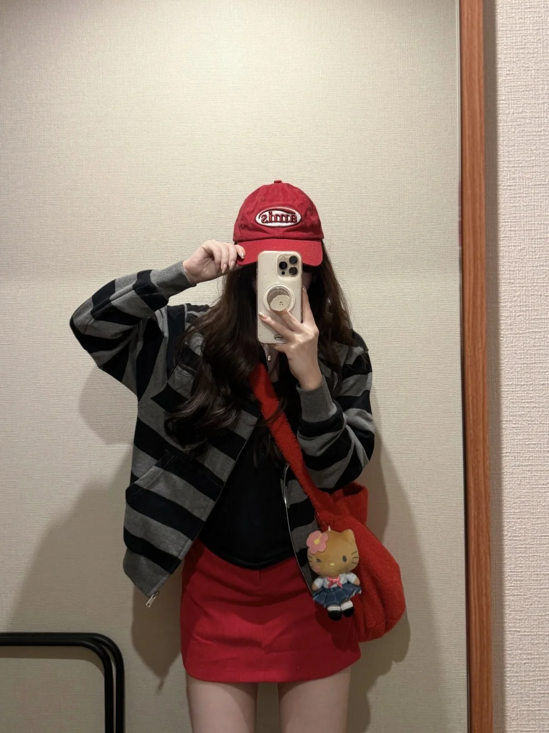 条纹外套作为秋冬黑灰色大衣的内搭也是不错的