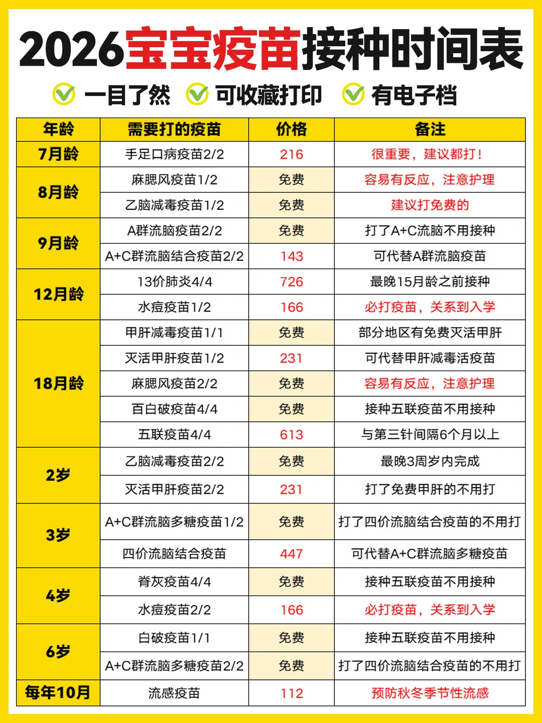 📝第一类:免费疫苗(必须打)