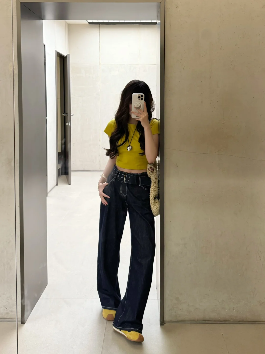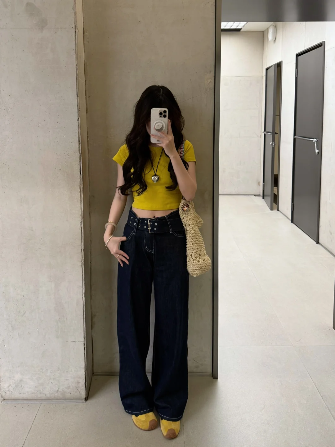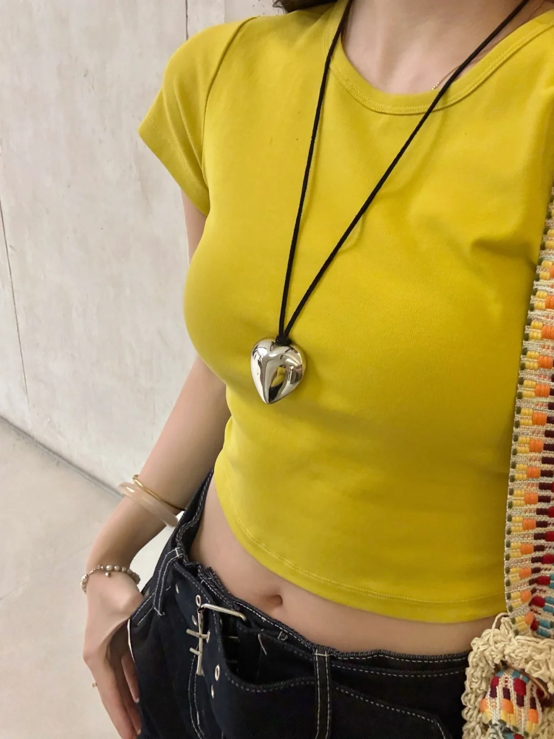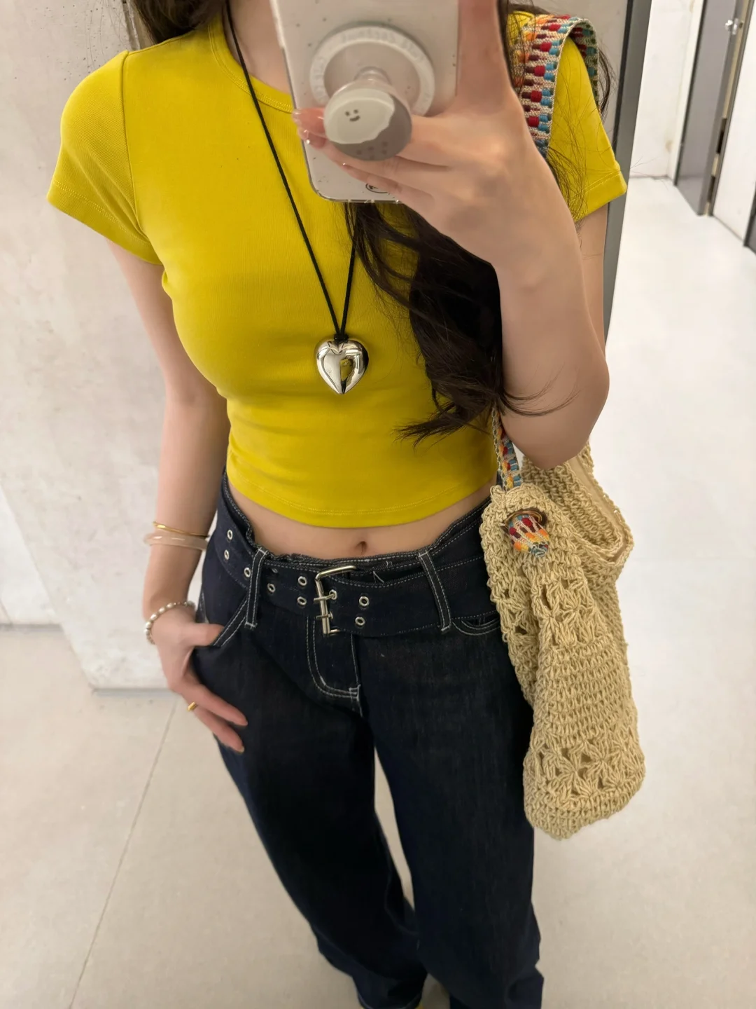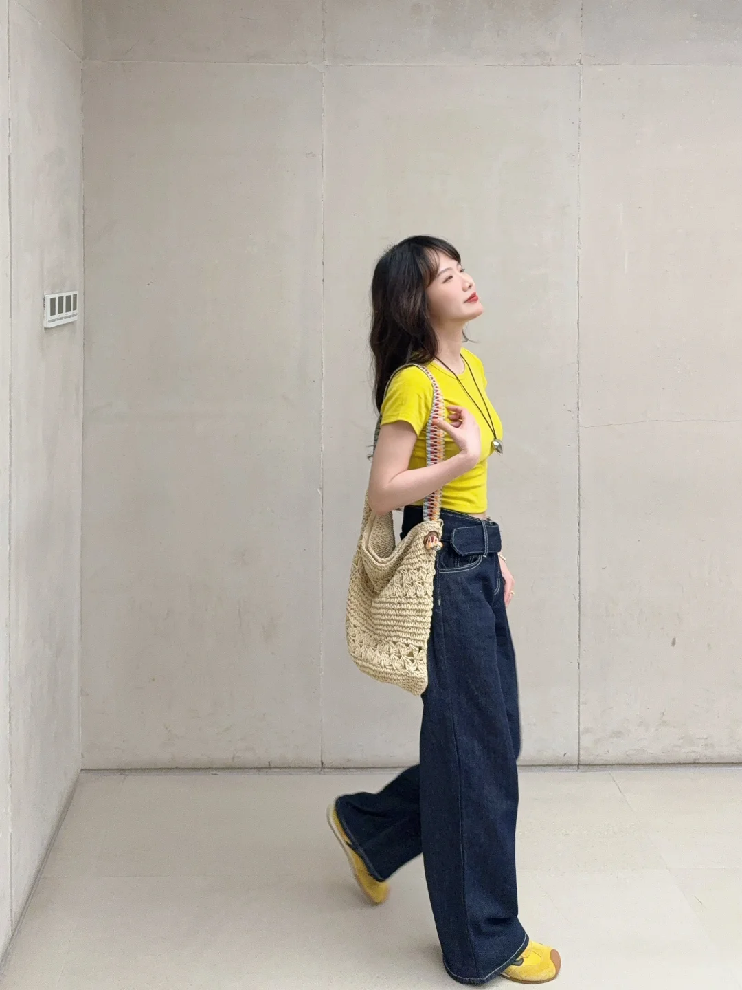 168/107 日常舒适好穿 上短下长特别适合梨型身材 这个黄色很显白也比较特别 已爱上!! 正肩短袖➕宽松拖地裤真的挺显身材的 裤子确实出现频率过高了 当之无愧包浆裤 (有时候真的不想搭哈哈哈感觉穿太多次了 ) 但是入股不亏 一年四季都可以穿~ 搭配正肩短袖宽松短袖和衬衫都是可以的 也可以直接搭配小吊带 秋冬也可以搭配卫衣夹克