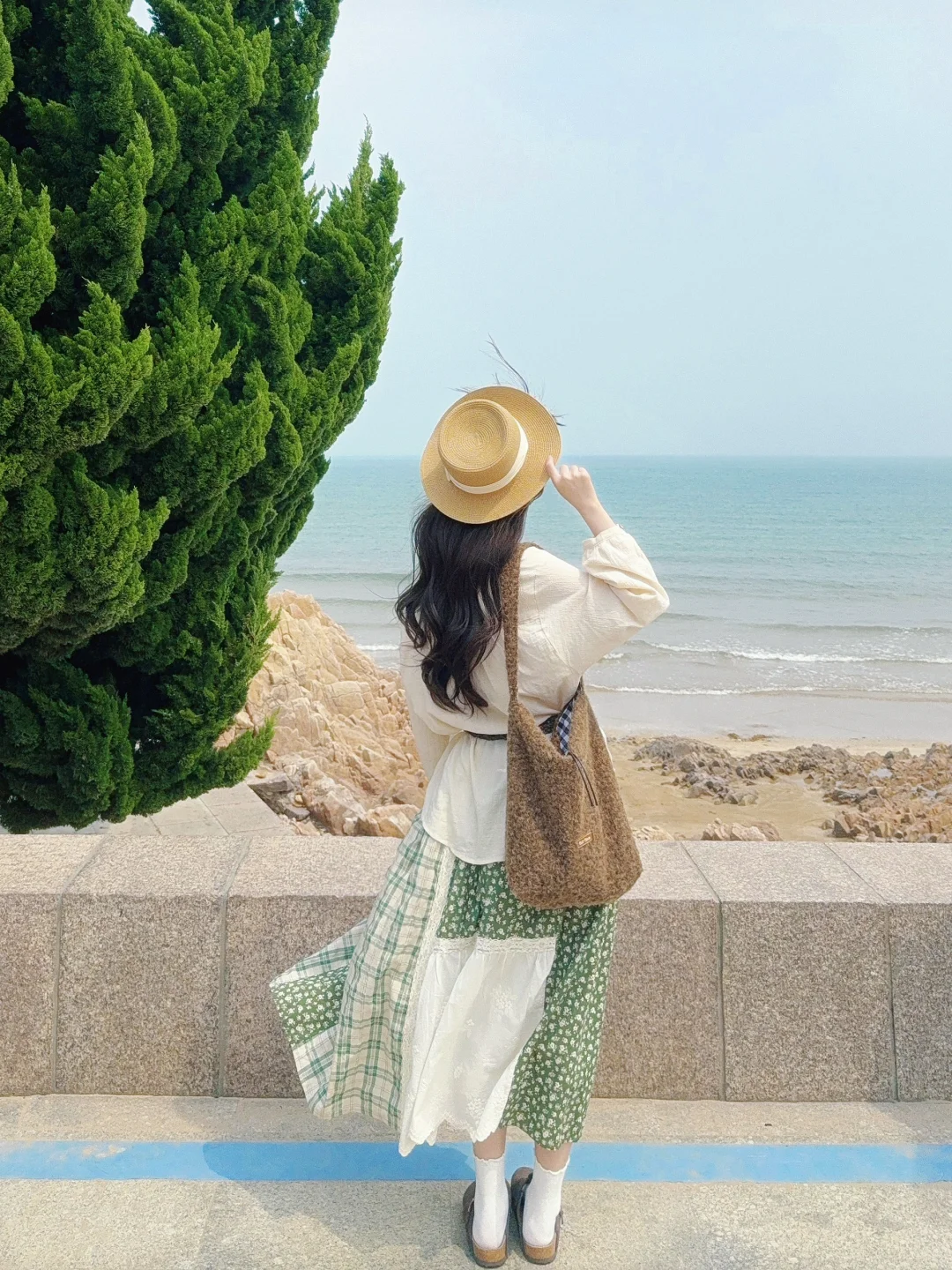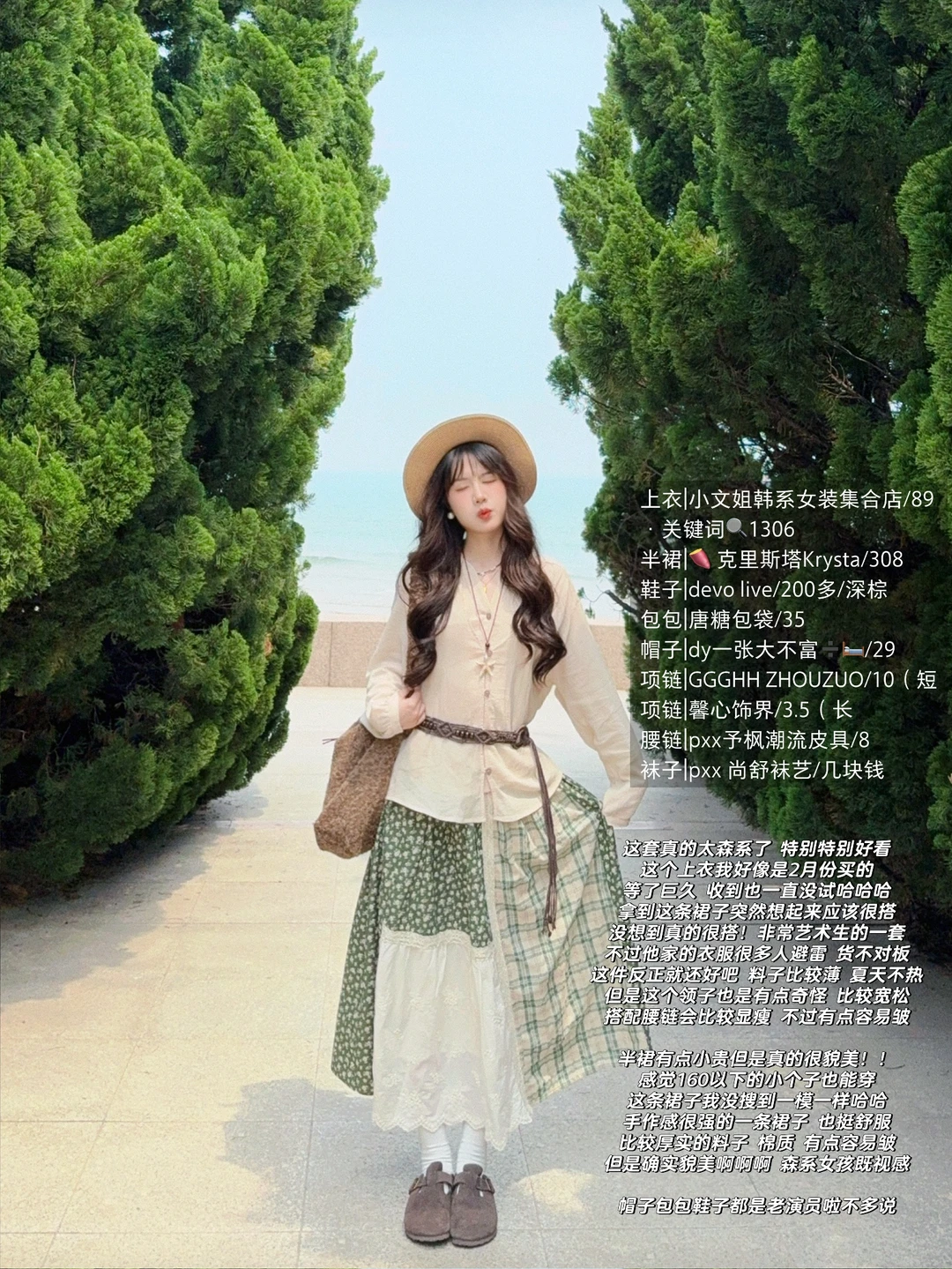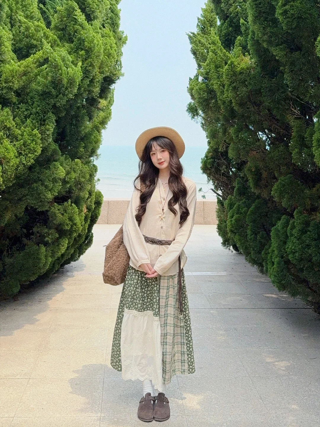 168/106左右 🍃绿野仙踪一套 特别特别喜欢!!超级有感觉! 很遮肉显瘦的一套 夏天穿也不会特别热 这套真的和雕塑园绝配 绿色的树蓝色的海 呼应起来太美妙了 上衣也可以搭配其他棕色绿色系的半裙或者长裤 这个上衣还可以搭配亚麻棉麻的衬衫 (有设计感一点的比较搭) 或者米色原色的罩衫之类的 比较有感觉 搭配暖色调的短袖也是挺好看的(米色绿色卡其色棕色) 📍青岛·雕塑园(必去!!天气好的时候真的超级出片!) 都在崂山区 可以和海之恋小麦岛一天去