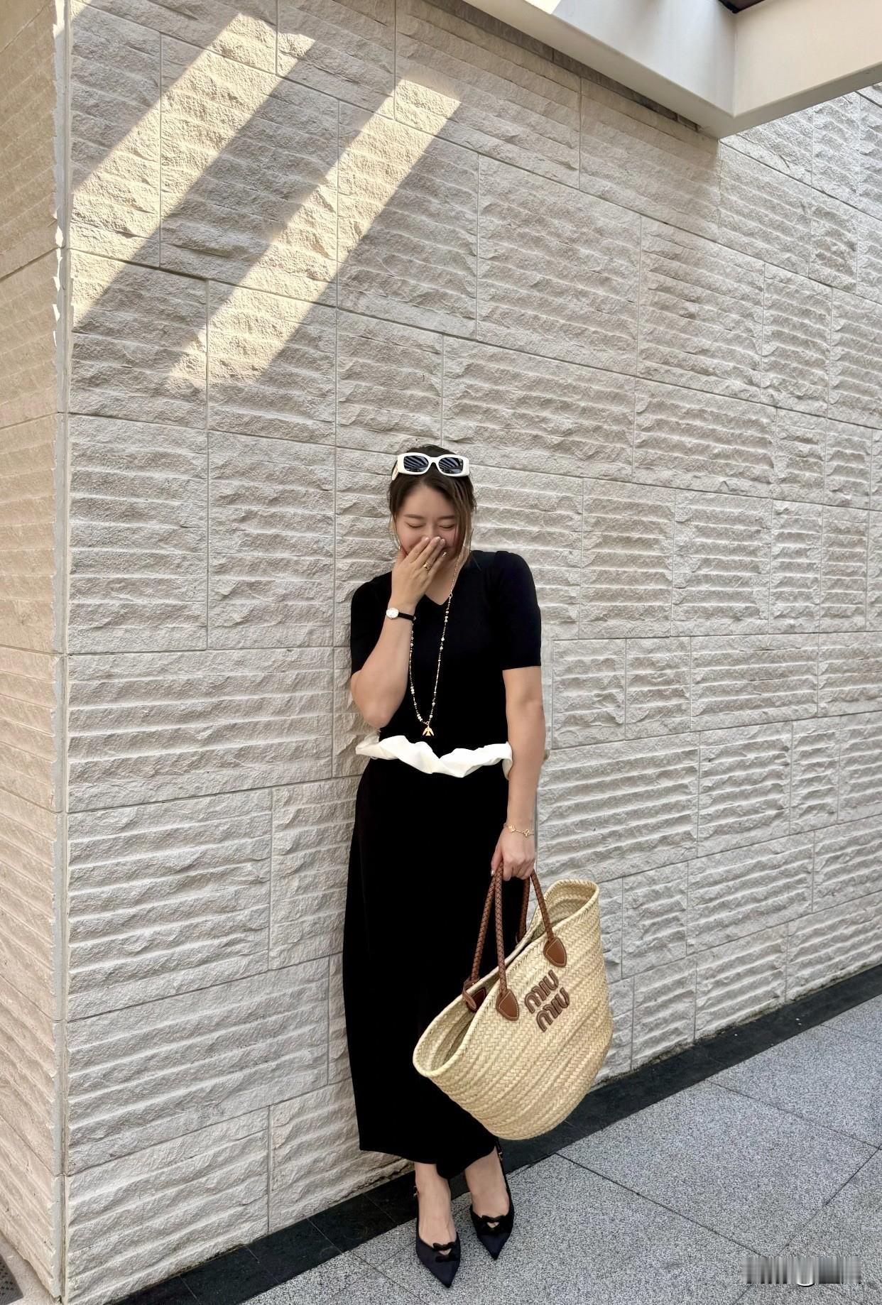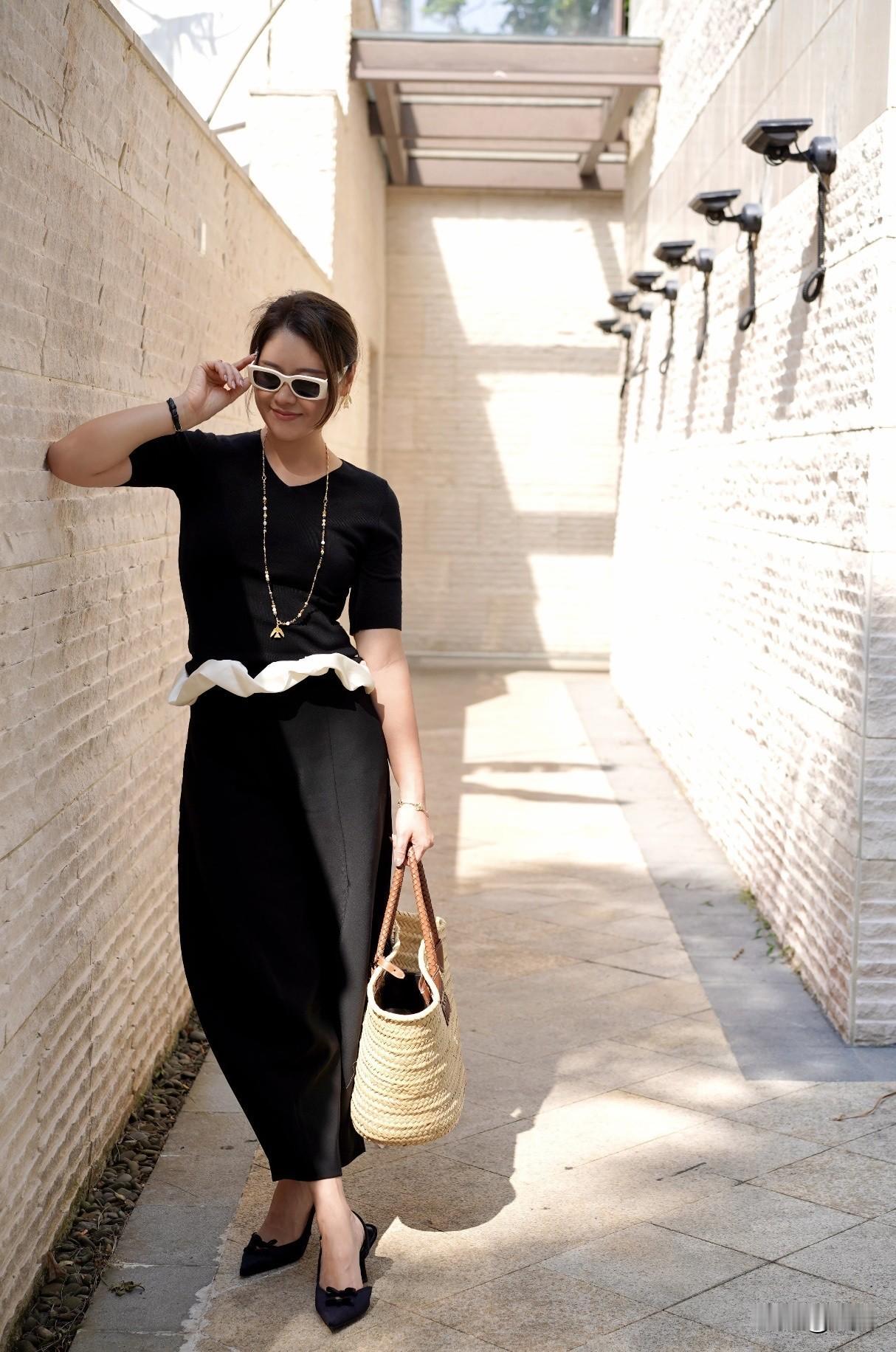 晒出美丽身影夏日穿搭指南:黑色连衣裙+草编包,轻松优雅!🌞👗👜