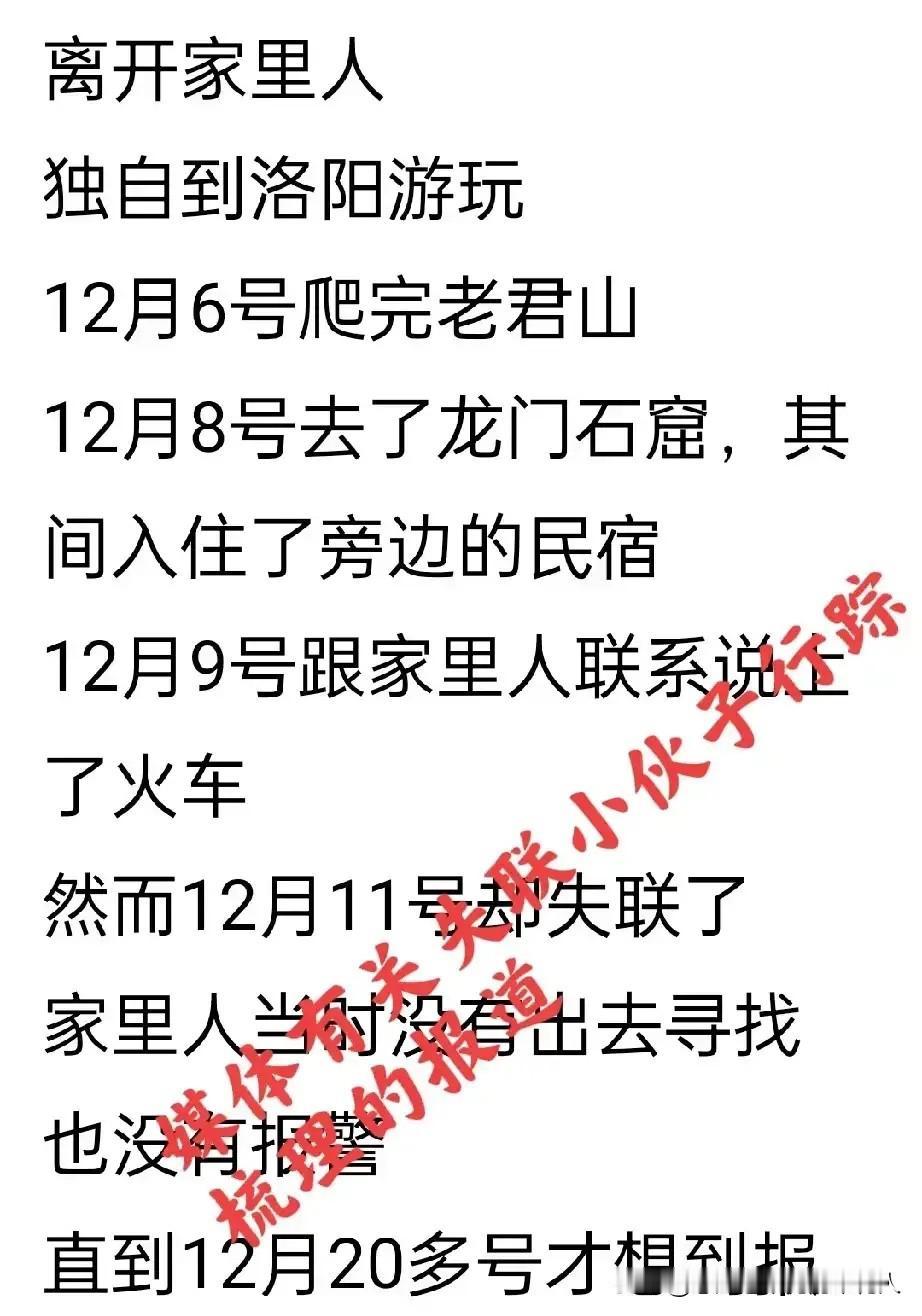 1月9日,洛阳公安局发布的消息让无数人感到痛心:此前前往洛阳旅游并失联近一个月的